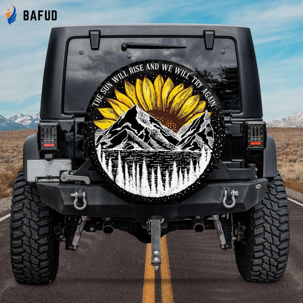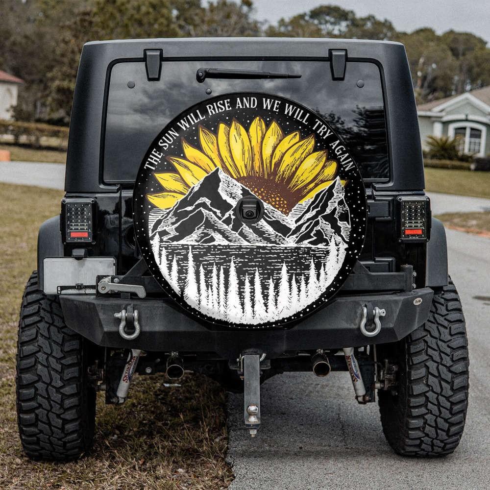 Sunflower Tire Cover for SUV & Bronco: The Sun Will Rise Again! (With Without Backup Camera Hole)