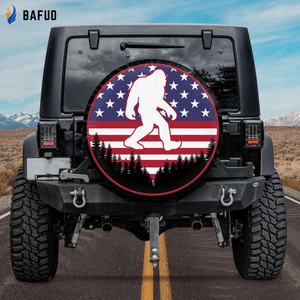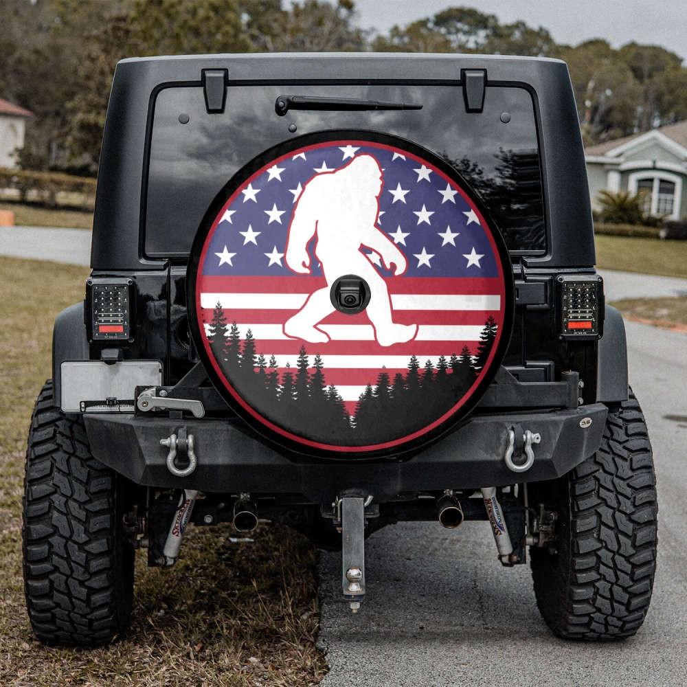 Spare Tire Cover for Camper: Bigfoot & American Flag Design - Ideal for SUVs with without Backup Camera