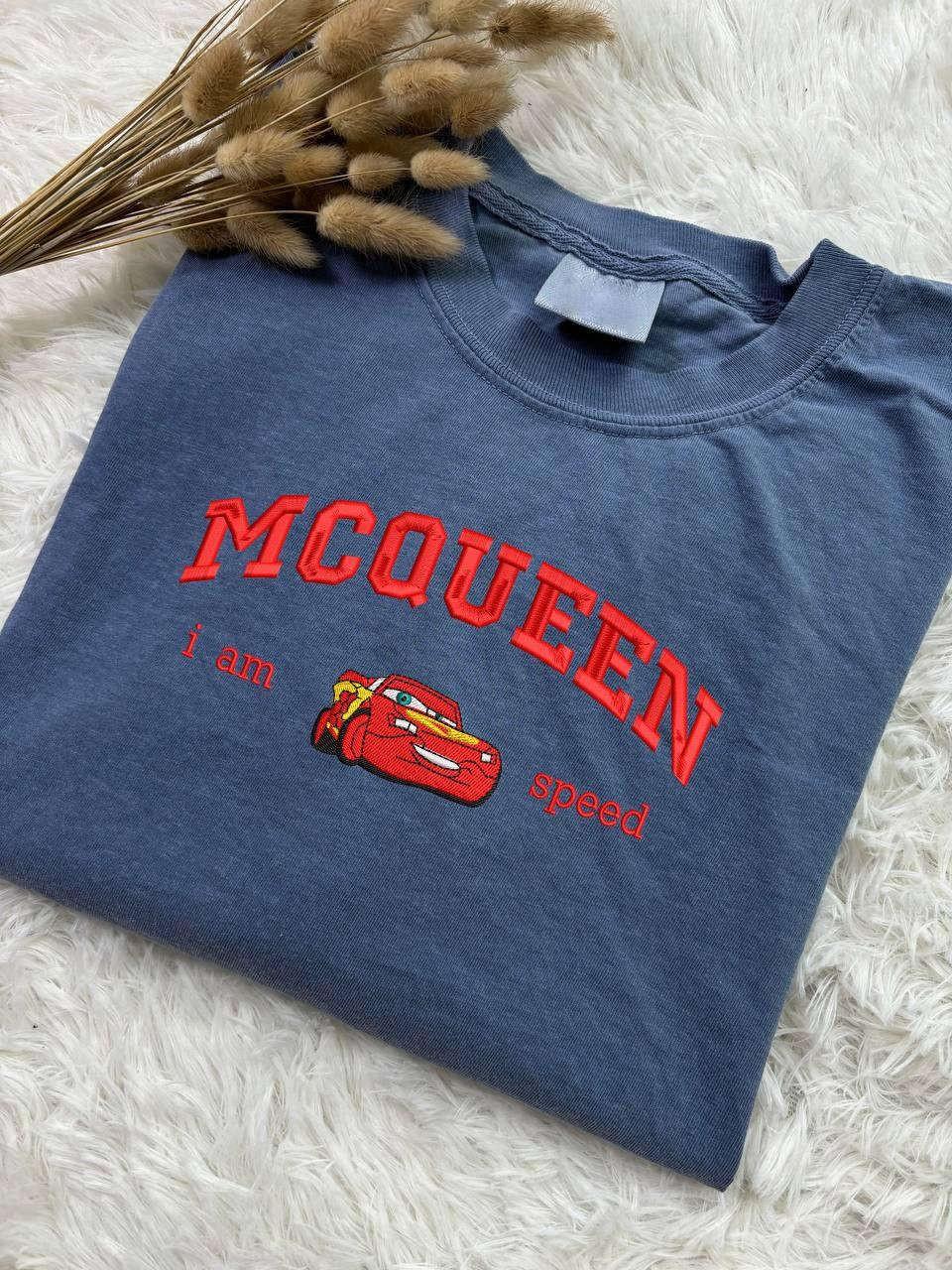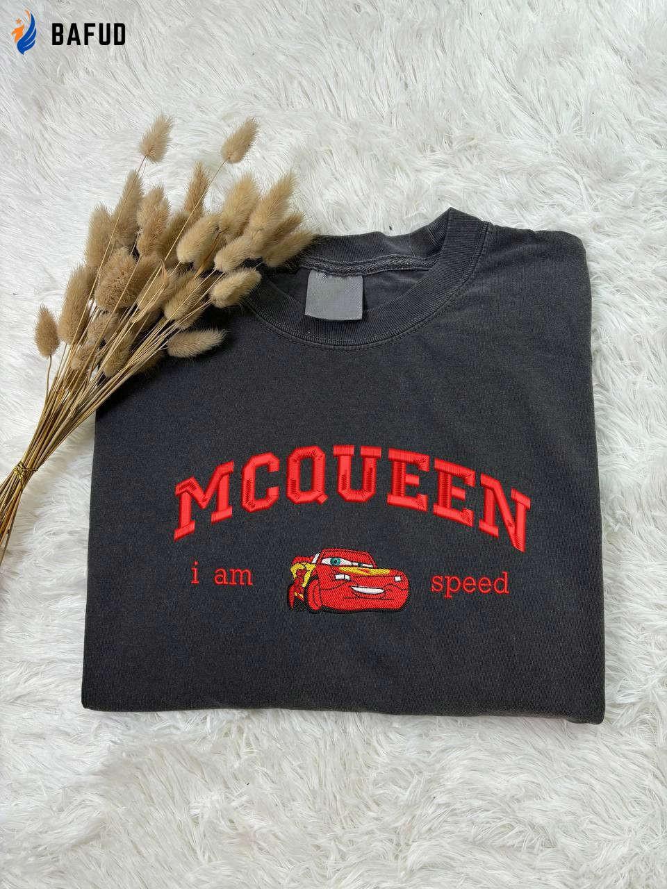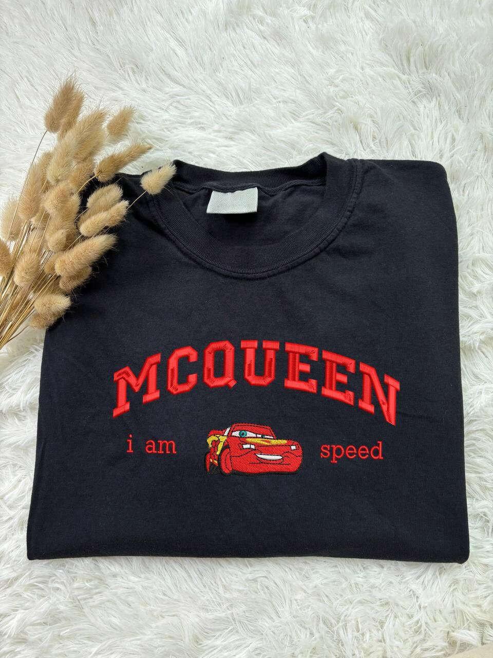 Mcqueen I am Speed Embroidered Tee: Cars Mcqueen Shirt Crewneck Sweater - Perfect Gift for Him Birthday