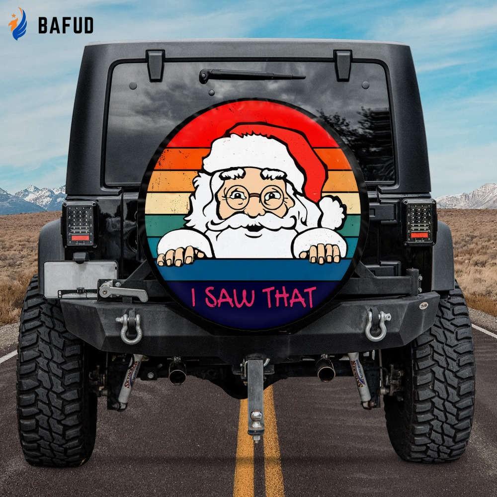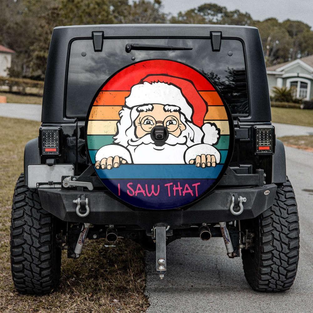 Constructed from high-quality materials, this tire cover not only protects your spare tire from dust, dirt, and harsh weather conditions but also adds a festive touch to your vehicle. The vibrant Santa Claus design with the catchy phrase "I Saw That" instantly captures attention and spreads joy during the holiday season.