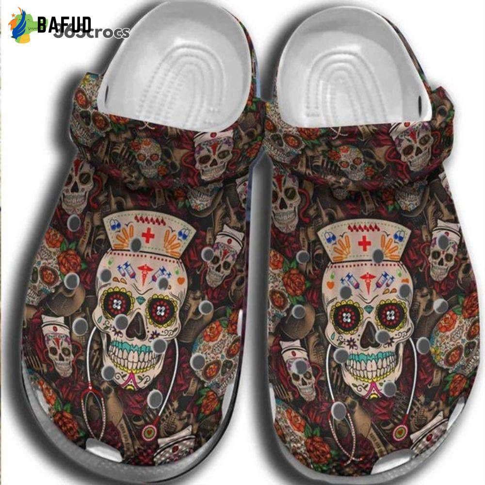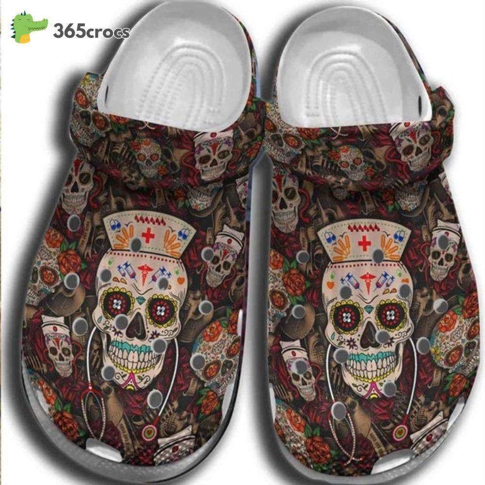 Mexican Sugar Skull Nurse Happy Day Of The Dead Nurse Lovers Mexican Day Of The Dead Crocs Clog Shoes Gift for Men and Women