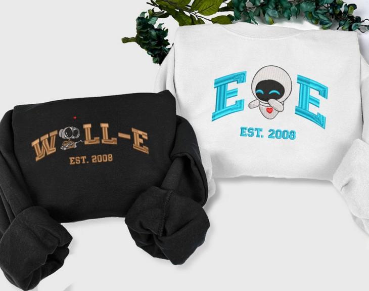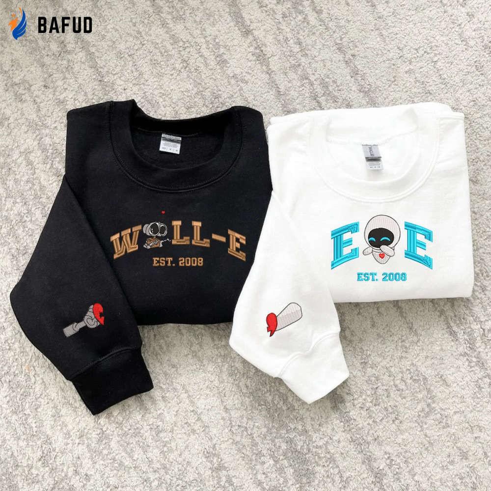 The Walle Eve Couple Embroidered Sweater is a must-have for all fashion-forward couples. Made with soft and comfortable fabric, this sweater features adorable cartoon characters that add a touch of playfulness to your outfit. The trendy crewneck design and vintage style make it a statement piece for any occasion. Perfect as a Valentine's gift, this sweater offers warmth, style, and a unique way to showcase your love. Get ready to turn heads and create memories together with this charming couple shirt. EH483-484.H