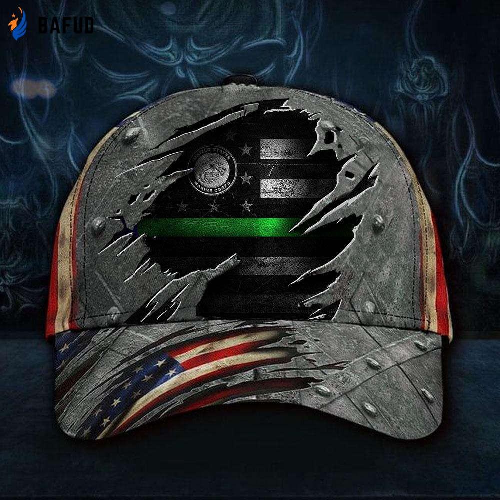 The US Marine Corps Green Line Hat is a timeless tribute to the honor and bravery of the United States Marine Corps. With its 3D print vintage design, this classic cap is not just a hat, but a symbol of pride and respect for our brave Marines.