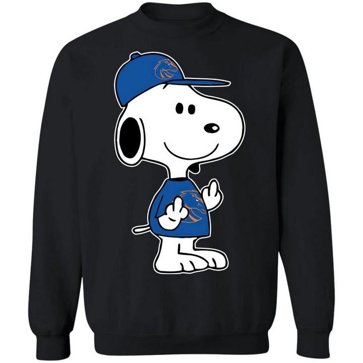 Introducing the Snoopy Boise State Broncos NCAA Double Middle Fingers Fck You Shirt, a bold and rebellious statement piece for true fans. Made from premium quality materials, this shirt boasts a comfortable fit that lasts. Its eye-catching design features Snoopy, the beloved character, flipping the bird twice, expressing your unwavering support and defiance. Perfect for game days or casual wear, this shirt is a must-have for any Boise State Broncos enthusiast. Show your team pride like never before and make a bold statement with this exclusive shirt. Get yours today and let your attitude shine!