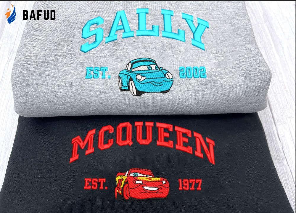 Introducing our Cartoon Sweatshirts collection, featuring the Cars Mcqueen x Sally Embroidered Sweatshirt, Trending Embroidered Crewneck, and Embroidery Hoodie ECT003-005.