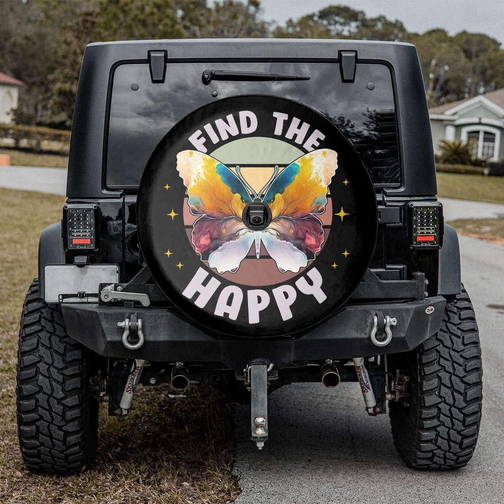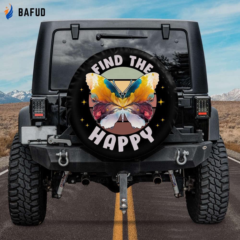 Retro Butterfly Spare Tire Cover: Happy Camping Accessory for Women Camera Hole Option