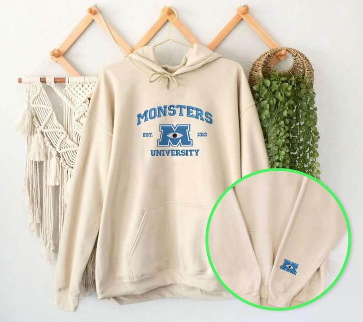 The Monster's University Crewneck Embroidered Sweatshirt is a must-have for any Disney fan! Made from high-quality materials, this trending crewneck features detailed embroidery of the iconic Monster's University logo. With its cozy and comfortable fit, it's perfect for wearing while watching your favorite movies. The hoodie EH124.hand offers warmth and style, making it a valuable addition to your wardrobe. Grab yours now and show off your love for the classic Disney movie in style!