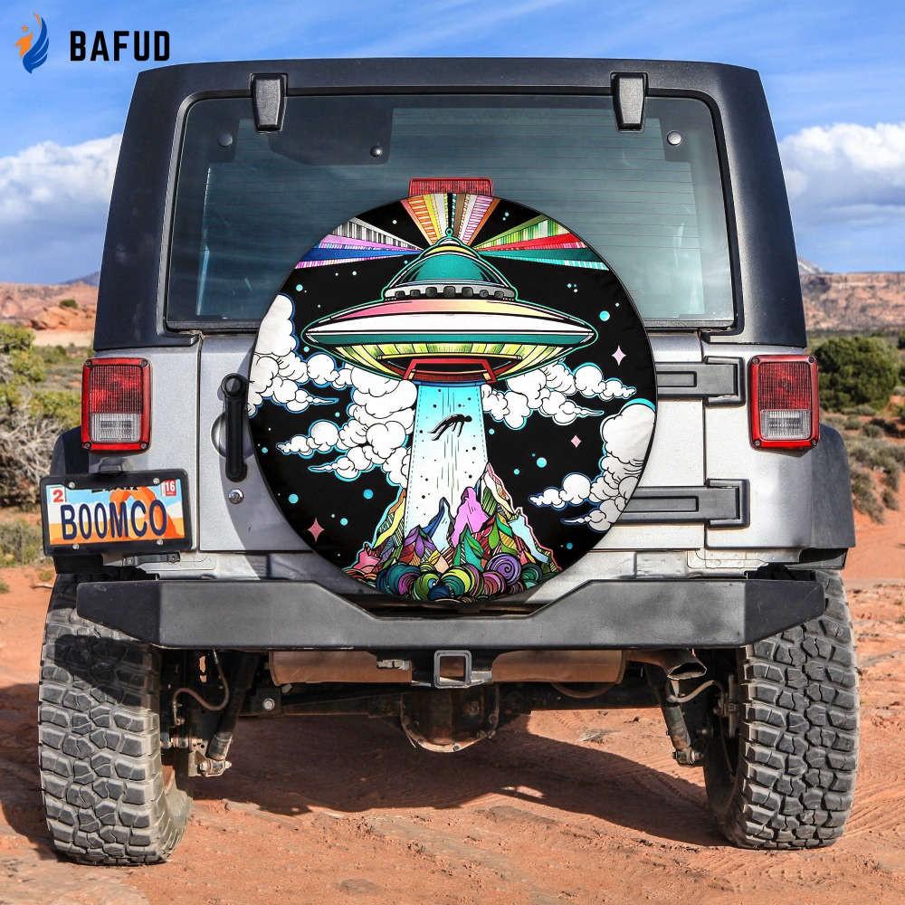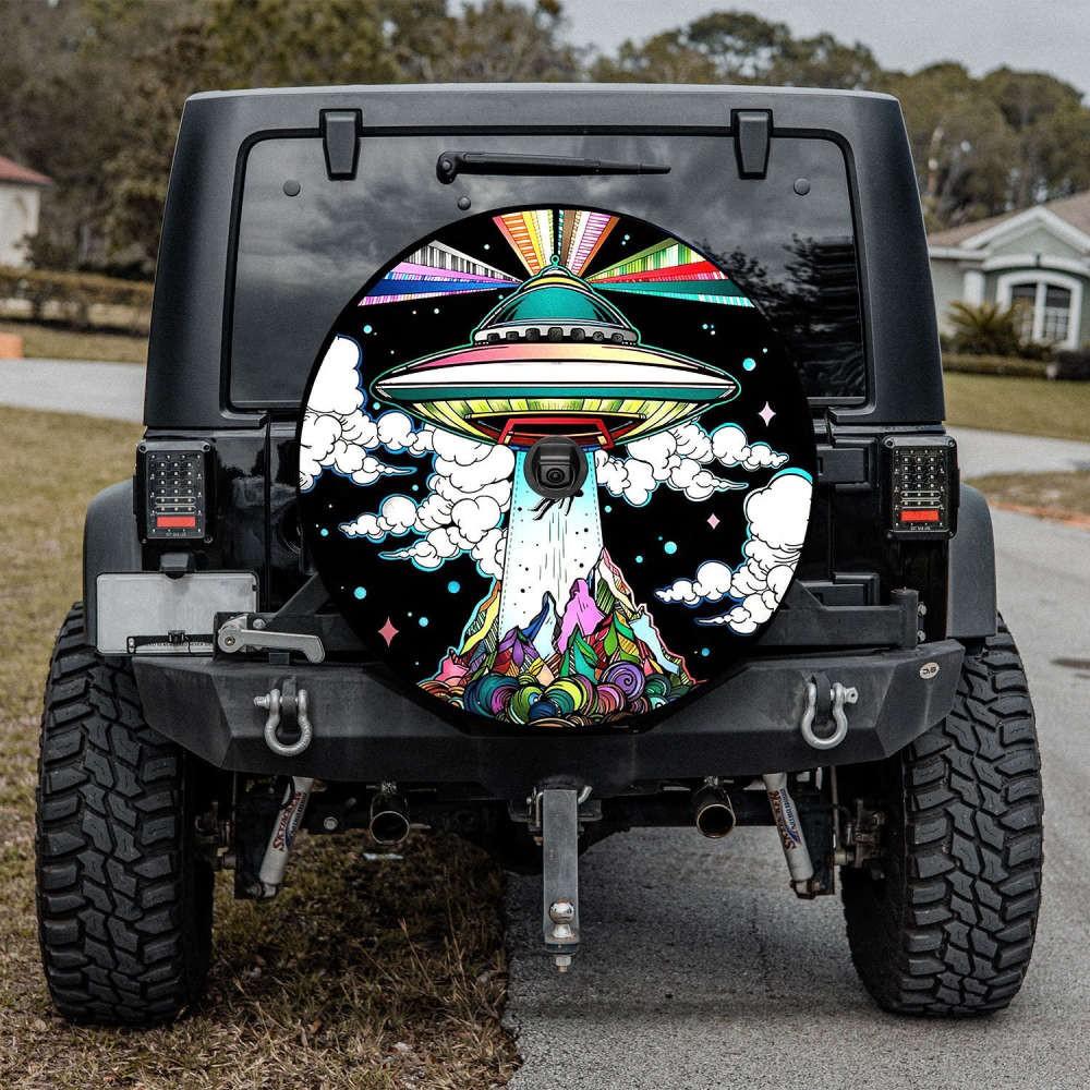 Funny UFO Abduction Spare Tire Cover: Cars Camping Gift with Camera Hole - Engaging & Hilarious!