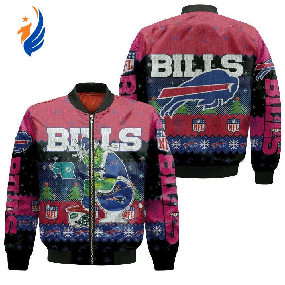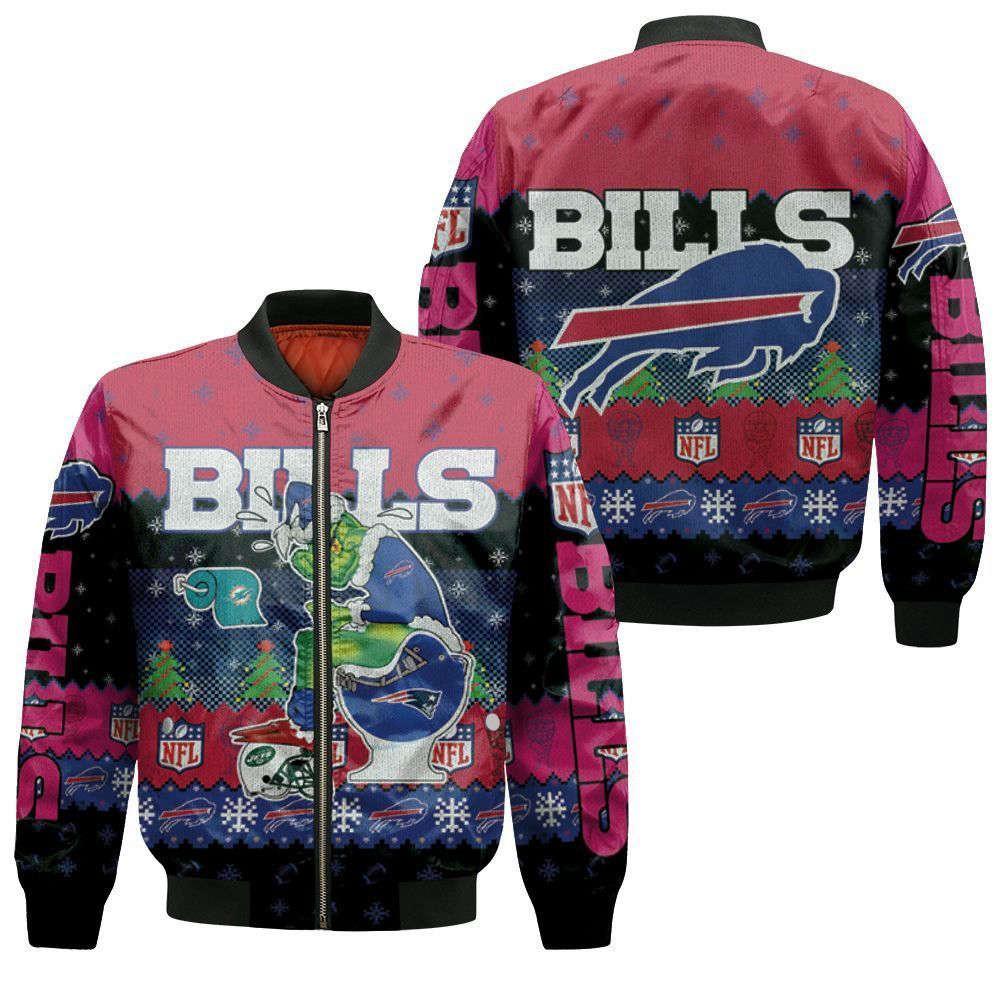 Detail for Buffalo Bills Grinch In Toilet Knitting Pattern Bomber JacketPerfect Christmas Gift for Men & Women