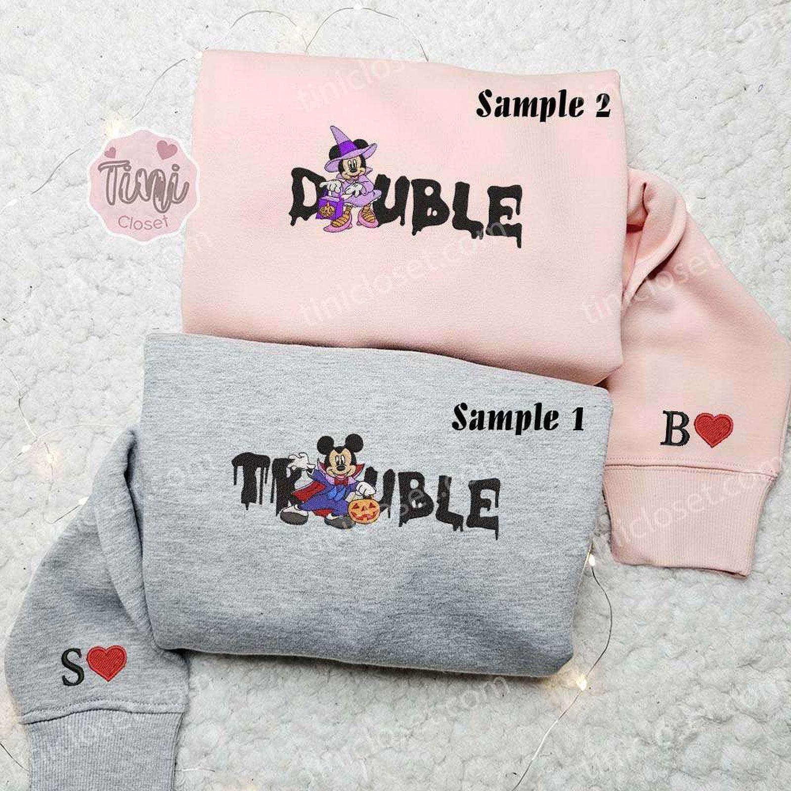 Spooktacular Mickey & Minnie Double Halloween Shirts - Fun Embroidered Couples Outfits