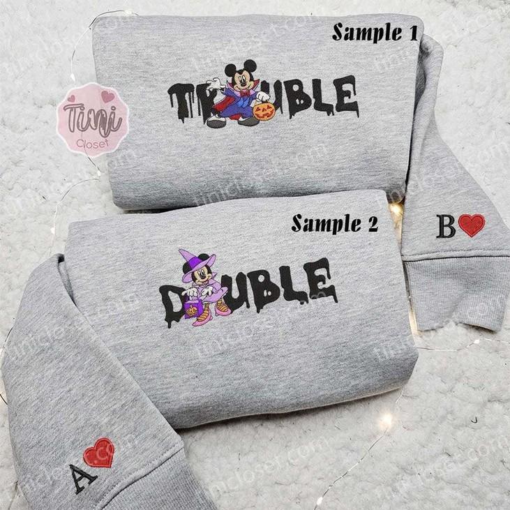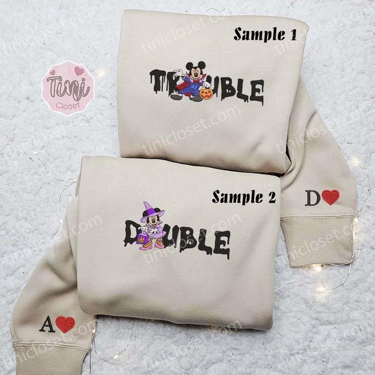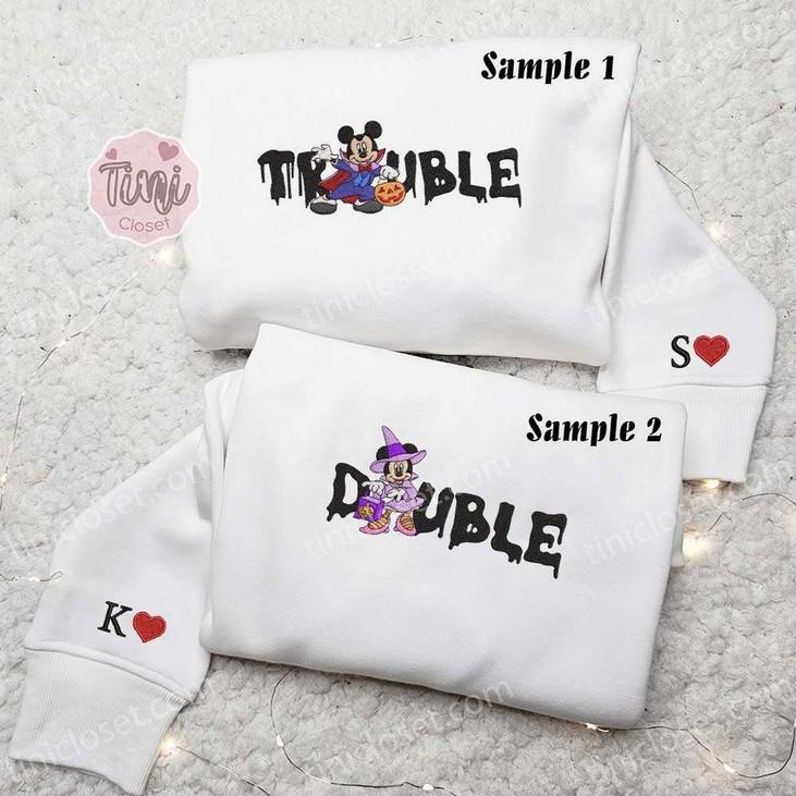 Get into the Halloween spirit with these adorable Mickey and Minnie Trouble Double Halloween Embroidered Couples Shirts! Made with premium quality fabric, these matching shirts are perfect for couples who love to celebrate together. The intricate embroidery of Mickey and Minnie in spooky Halloween costumes adds a touch of charm to your outfits. Whether you're attending a Halloween party or going out for a fun night, these shirts are sure to turn heads and make a statement. The comfortable fit and soft material ensure all-day comfort, while the vibrant colors stay true wash after wash. With these shirts, you'll not only showcase your love for each other but also your passion for Halloween. So, why wait? Grab your partner and get ready to create double trouble this Halloween!