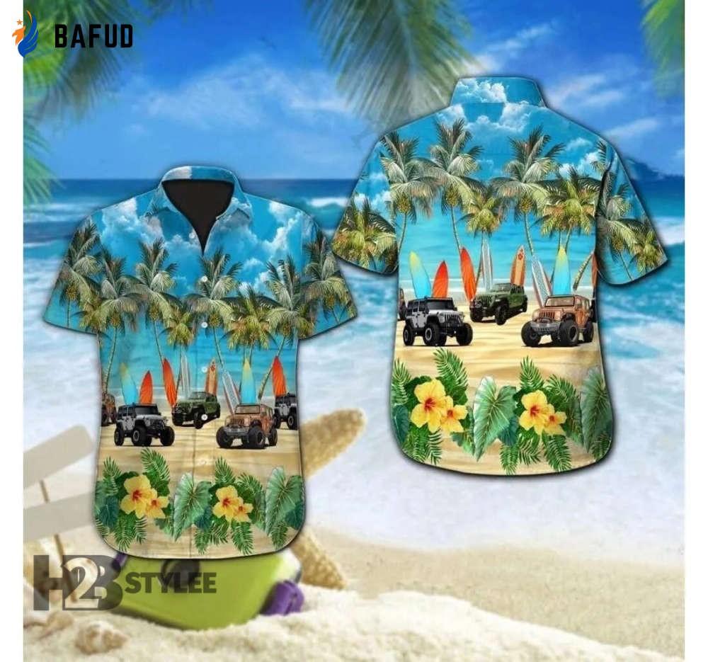 Elevate your style and embrace the spirit of adventure with the Jeep on The Trip Vintage Jeep Car Summer Tropical Hawaiian Aloha All Over Printed Hawaiian Shirt. Order yours now and let the good times roll!