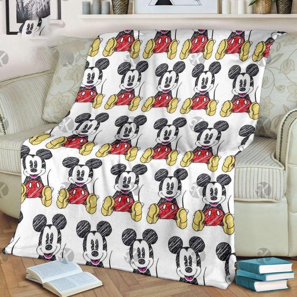 Mickey Mouse Funny Posing Pattern In White Background Fleece Blanket - Blanket Home Decor Gift