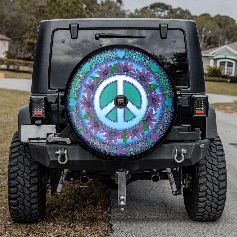 Introducing our Peace Sign Spare Tire Cover, the perfect accessory to showcase your unique style and spread positive vibes wherever you go. Available with or without a camera hole, this tire cover is a must-have for all adventure seekers.