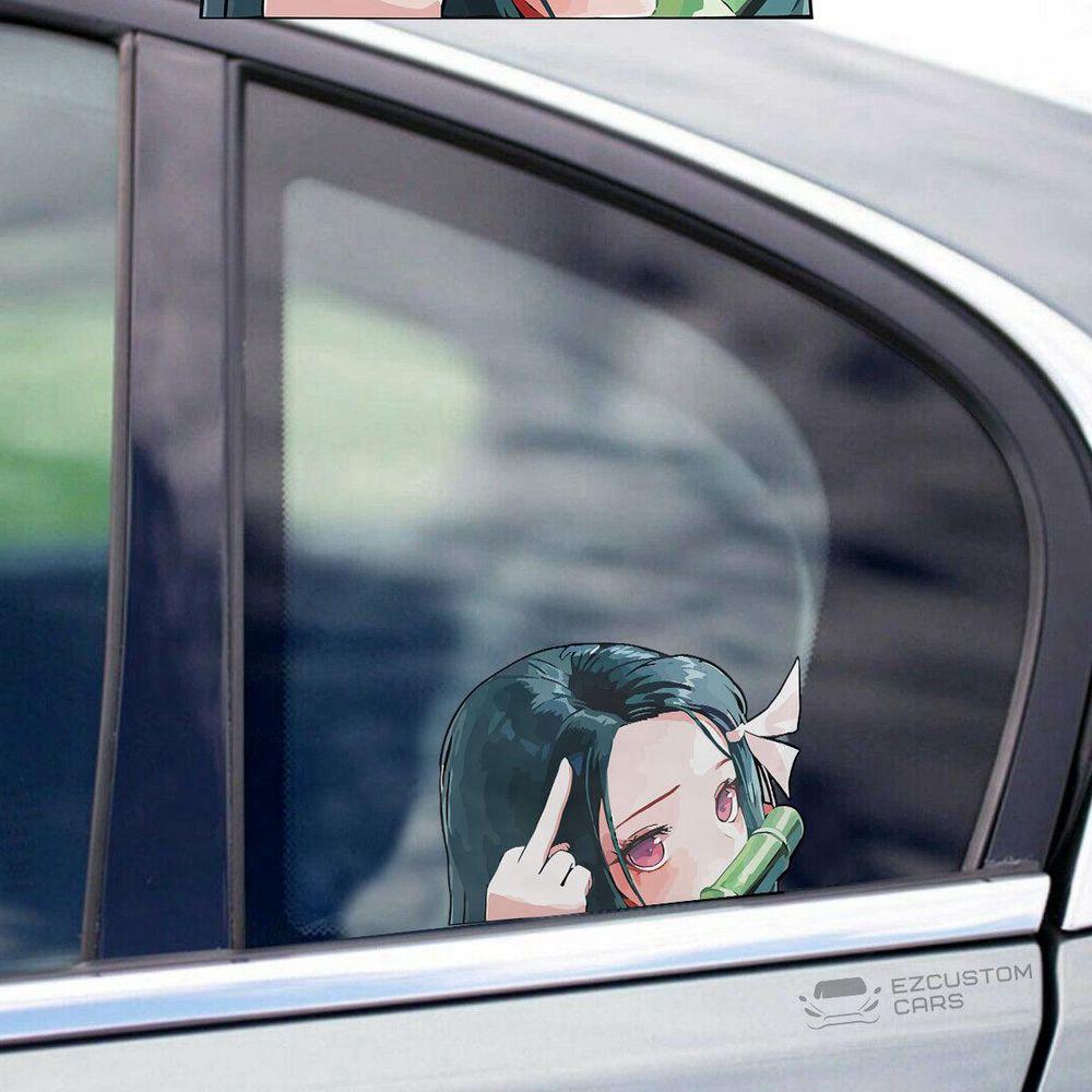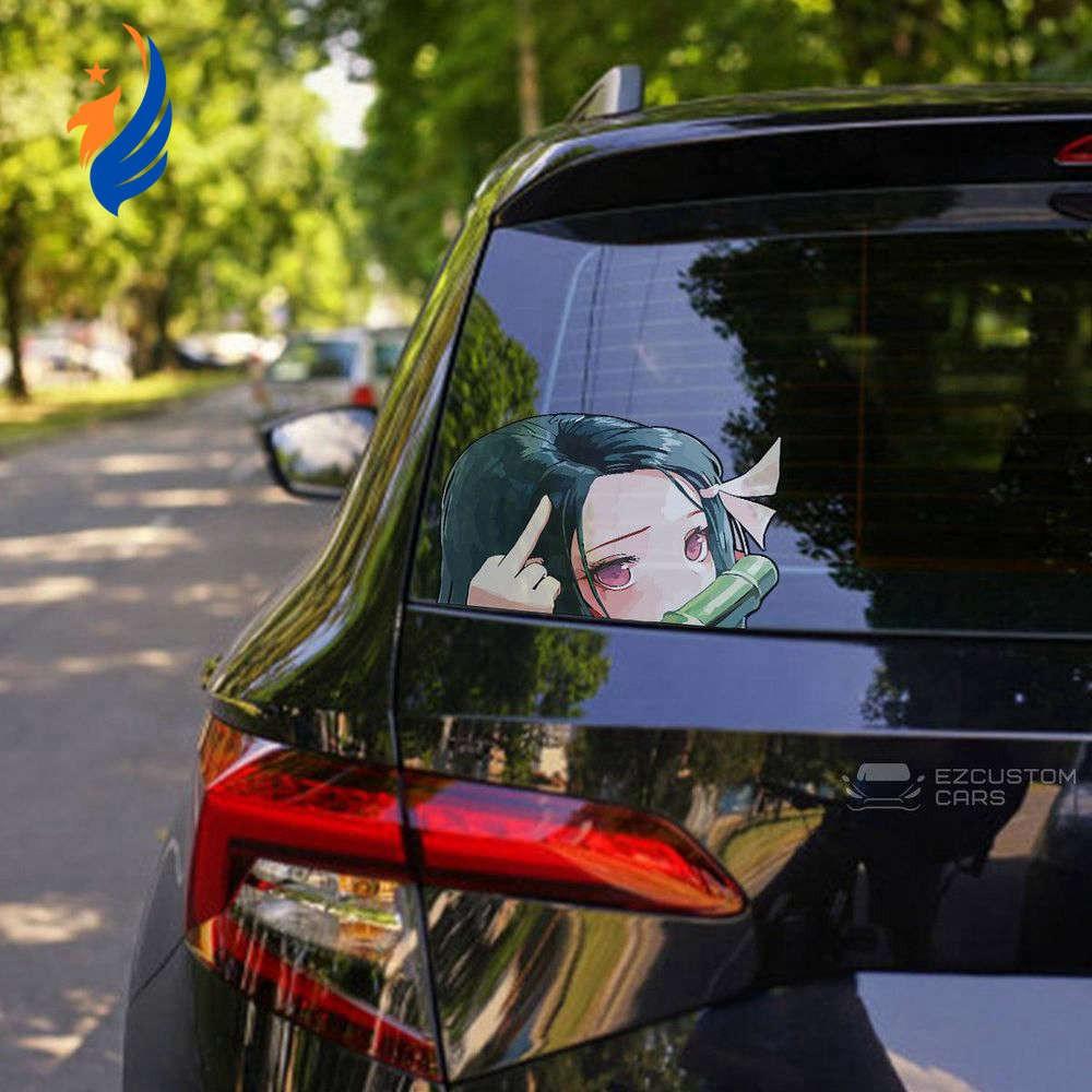 Nezuko Car Stickers Demon Slayer Car Decal. Manufactured with full-color printed vinyl, sun-resistant and waterproof. Ideal for decorating iPads, laptops, furniture, motorcycles, cars, surfboards and skateboards, etc.