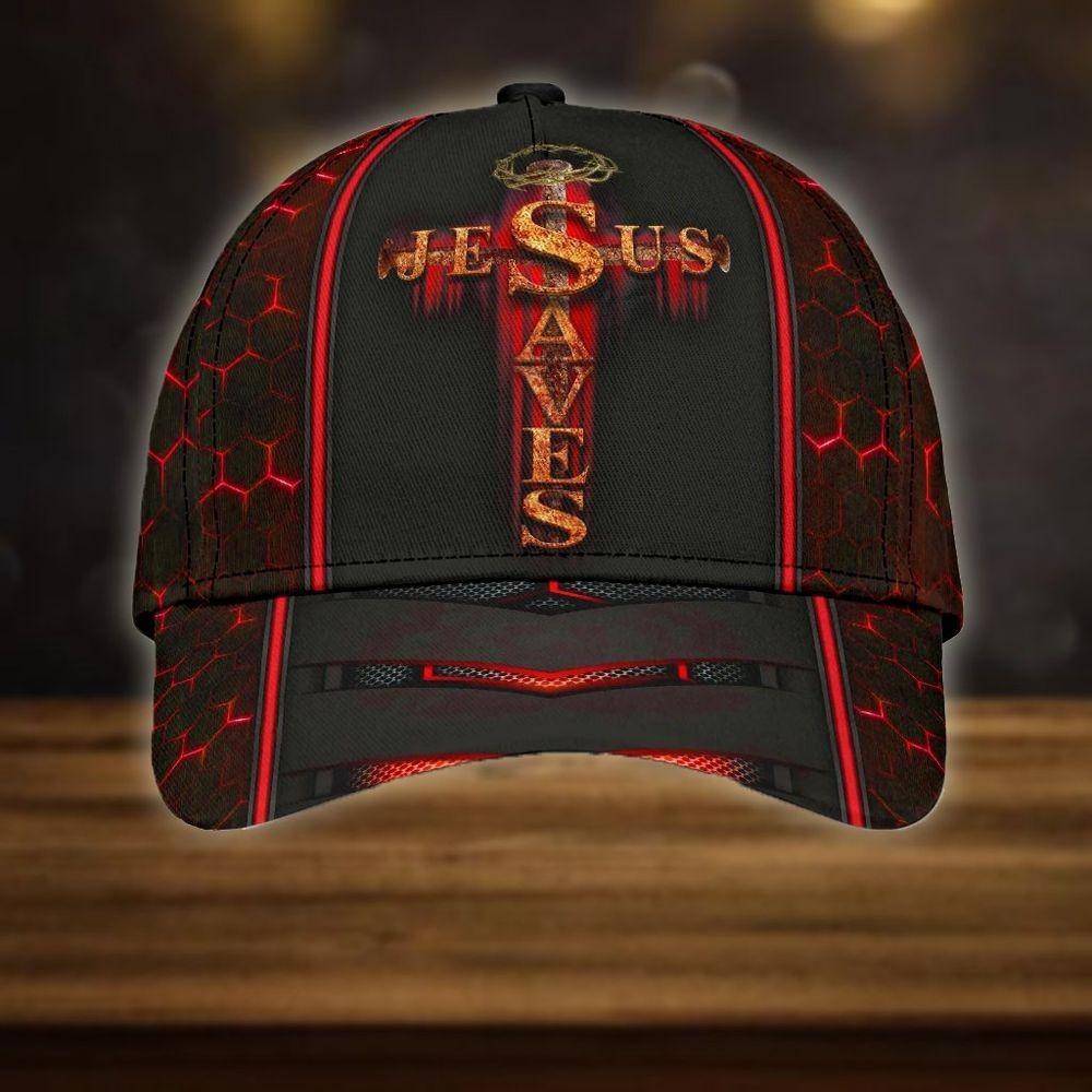 Featuring the iconic "Jesus Saves" emblem boldly displayed on the front, this cap serves as a constant reminder of the redemptive power of faith. The raised lettering adds depth and dimension, making the message truly stand out.