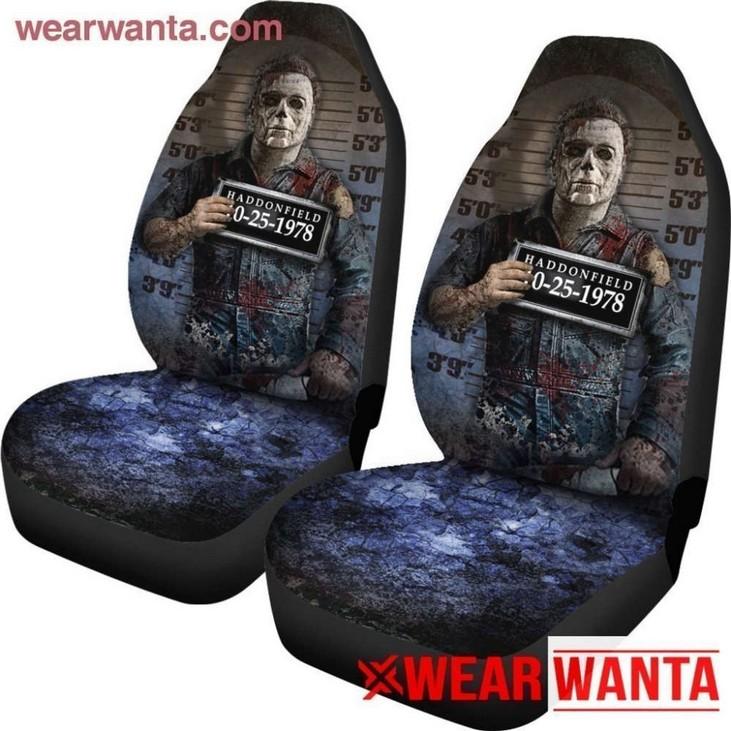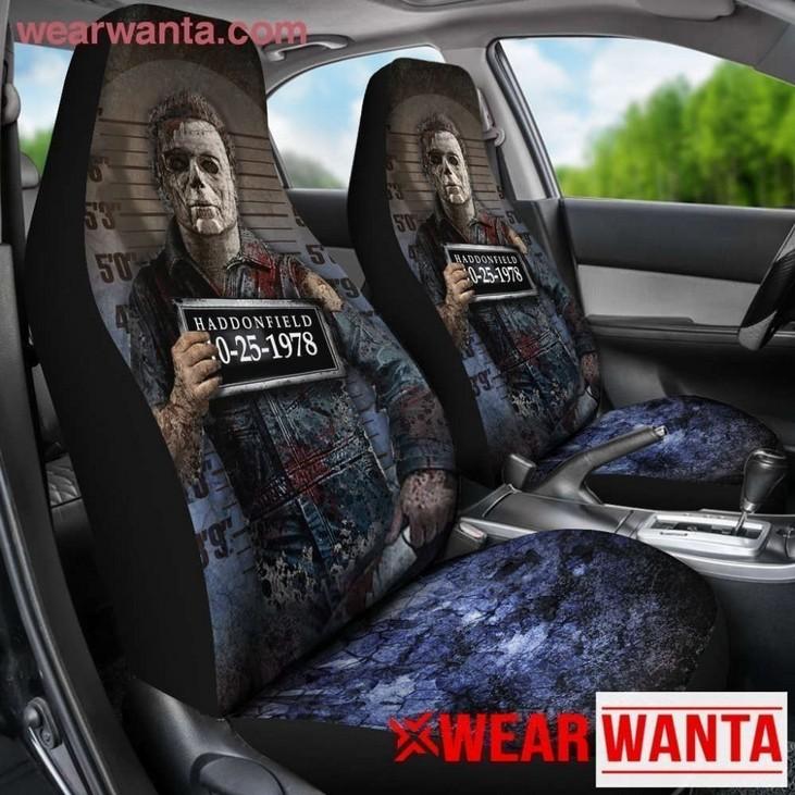 our Michael Myers Car Seat Covers Custom Police Wanted Car Decoration! Embrace the thrill of the hunt with this unique and captivating car accessory.
