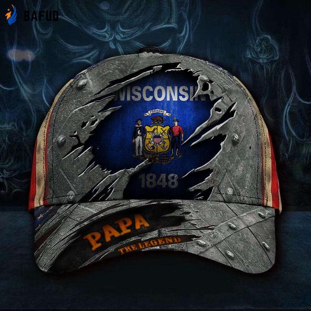 Introducing the Wisconsin Papa The Legend 3D Hat Vintage USA Flag Cap - the perfect gift for any dad on Father's Day! This classic cap is not only stylish but also holds sentimental value, making it a cherished keepsake.