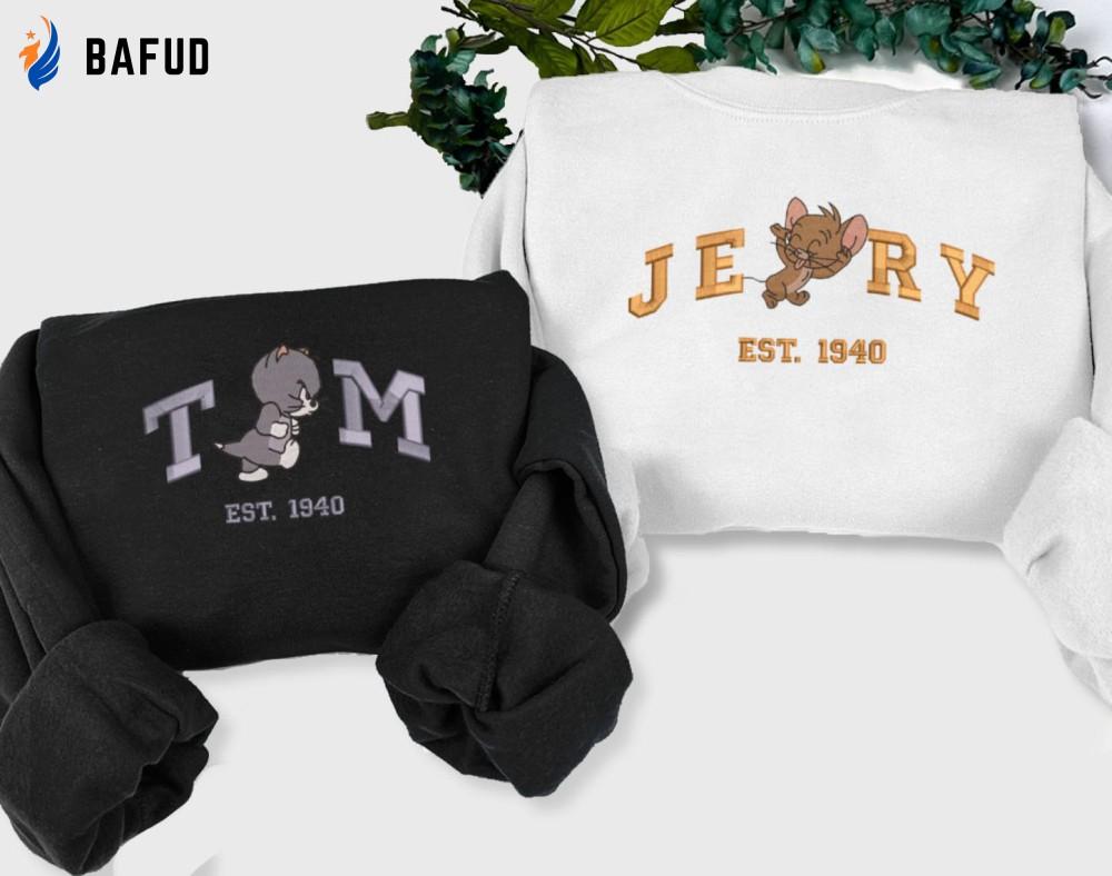 Introducing our Tom and Jerry Embroidered Sweatshirt, a musthave for any cartoon lover! This Trending Crewneck is the perfect Valentine gift or Christmas Shirt that combines style and nostalgia. Made with premium quality fabric, this sweatshirt offers not only comfort but also durability. The intricate embroidery of Tom and Jerry adds a touch of playfulness to your wardrobe, making it a standout piece. With its versatile design, you can wear it for any casual occasion or cozy up in it on a chilly day. Join the trend and embrace your childhood memories with this Cartoon Embroidered Sweatshirt. Grab yours now and relive the joy of Tom and Jerry while staying fashion-forward!