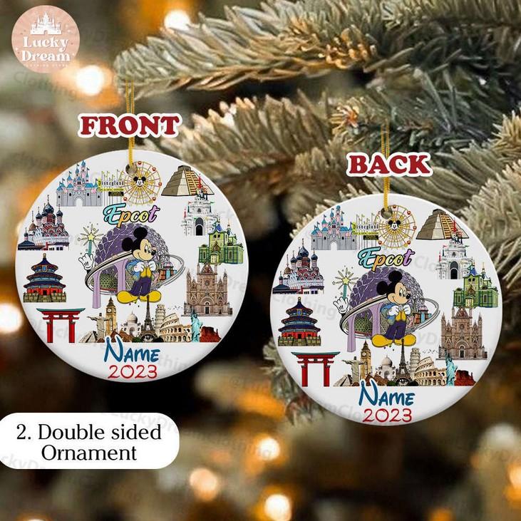 Introducing our Personalized Name Mickey Mouse Epcot Ornament, a must-have addition to your Disney Christmas collection! Made with