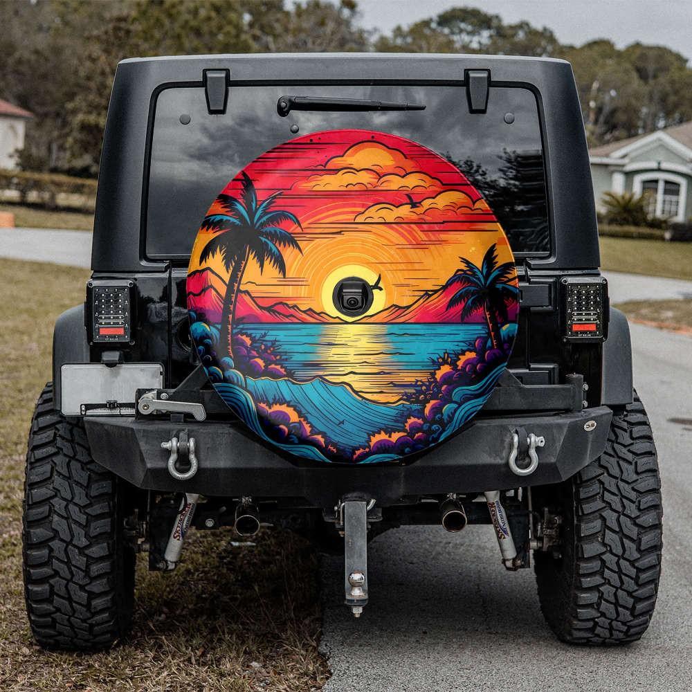 Introducing our Personalized Spare Tire Cover, designed especially for car lovers who appreciate the beauty of a picturesque beach sunset over the ocean. This stunning cover not only adds a touch of style to your RV or SUV, but also provides ultimate protection for your spare tire.