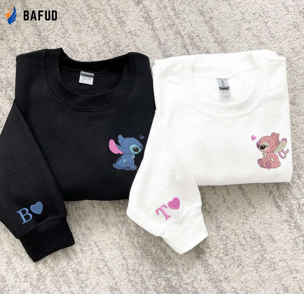Introducing our Stitch and Angel Embroidered Sweatshirt, the perfect Valentine's Day gift for couples who love Disney! Made with premium quality materials, this sweatshirt features adorable Stitch and Angel embroidery, adding a touch of cuteness to your wardrobe. The soft and cozy fabric ensures maximum comfort, making it ideal for lounging or going out. Our couple shirts are designed to celebrate love and unity, with a matching design that symbolizes the bond between two individuals. Whether you're going on a romantic date or simply spending a cozy night in, these shirts will make you feel connected and stylish. Surprise your loved one with this unique Valentine gift and create unforgettable memories together. Embrace the magic of love with our Stitch Couple Shirts, the perfect addition to your couple's collection. Order now and experience the joy of twinning in style!