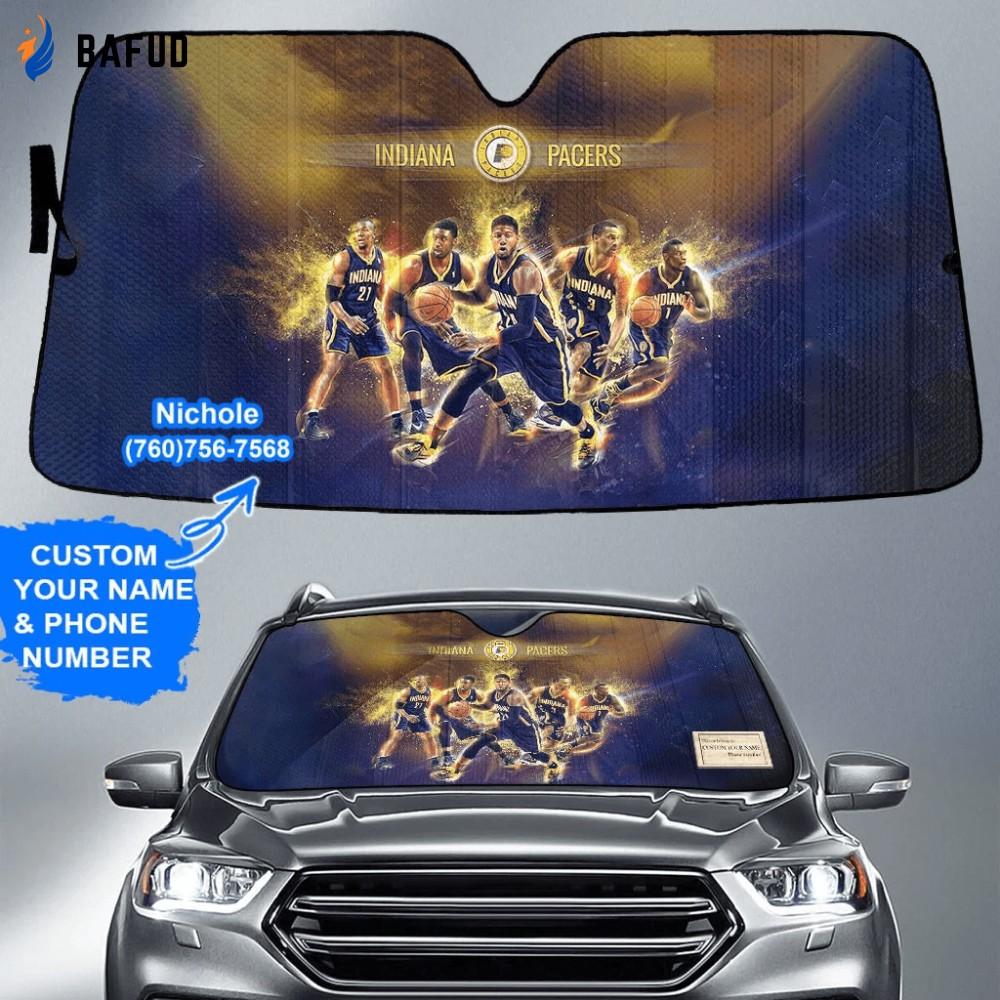 Introducing the Indiana Pacers Team V1 Personalized Name And Phone Number Custom Auto Sunshade Gift For Fans! Show off your team spirit and protect your car's interior with this stylish sunshade. Made with high-quality materials, it features the iconic Indiana Pacers logo and can be customized with your name and phone number.