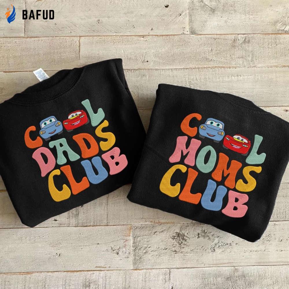 Embroidered Sweatshirt, the perfect addition to your wardrobe! Made with high-quality materials, this sweatshirt is designed to keep you warm and stylish all day long. The cartoon design adds a touch of playfulness to your outfit, making it perfect for casual outings or cozy nights in. With the couple crewneck style, you and your partner can show off your love and connection. It's not just a sweatshirt, it's a statement of your coolness and a symbol of your love. The Mcqueen & Sally Cool Dads Club/Cool Moms Club Embroidered Sweatshirt is also an ideal Mother's Day gift, showing your appreciation for all the hard work and love she puts into being a mom. So, why wait? Grab yours now and join the club of cool dads and moms!