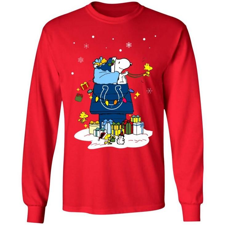 The Indianapolis Colts Santa Snoopy Wish You A Merry Christmas Shirt is the perfect holiday attire for any Colts fan! Featuring a cheerful Santa Snoopy holding a football, this shirt combines the joy of Christmas with the pride of supporting your favorite team. Made from high-quality materials, it offers a comfortable fit and durability. Showcasing the iconic Colts logo, this shirt allows you to display your team spirit during the festive season. Whether you're attending a holiday party or watching the game at home, this shirt is sure to make you stand out. Spread holiday cheer and support your team with this unique and festive shirt!