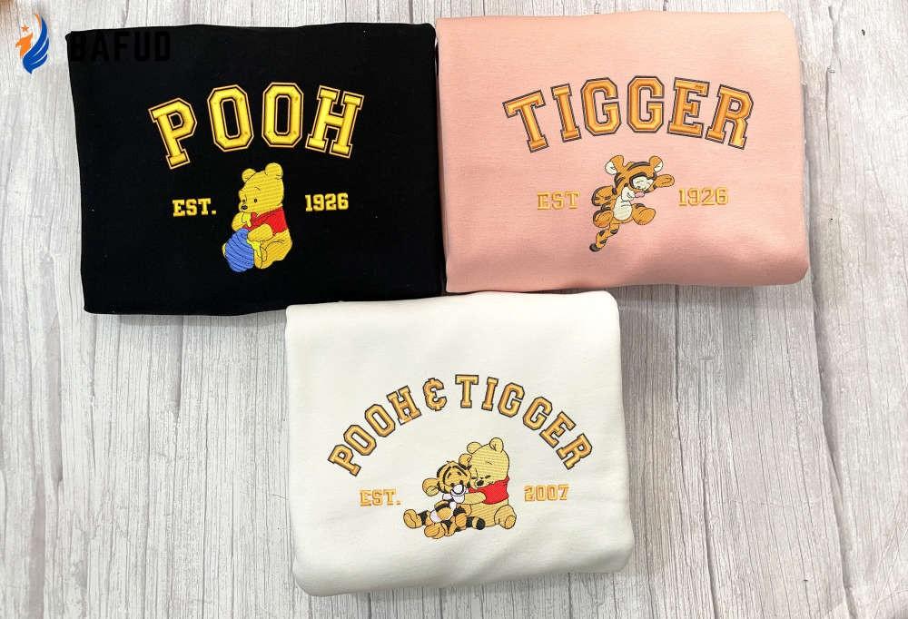 Introducing our Tigger From Winnie Pooh Cartoon Embroidered Sweatshirt, the epitome of trendy and vintage fashion! This sweatshirt features a beautifully embroidered Tigger design from the beloved Winnie the Pooh cartoon, adding a touch of nostalgia to your wardrobe. Made with high-quality materials, this crewneck sweatshirt offers unparalleled comfort and durability. Its y2k embroidery hoodie style adds a unique and fashionable twist to any outfit. With its eye-catching design and impeccable craftsmanship, this sweatshirt is perfect for casual outings or cozy nights in. Embrace the timeless charm of Tigger and stand out from the crowd with this must-have piece. Grab yours now and experience the joy of wearing a piece of Disney magic!