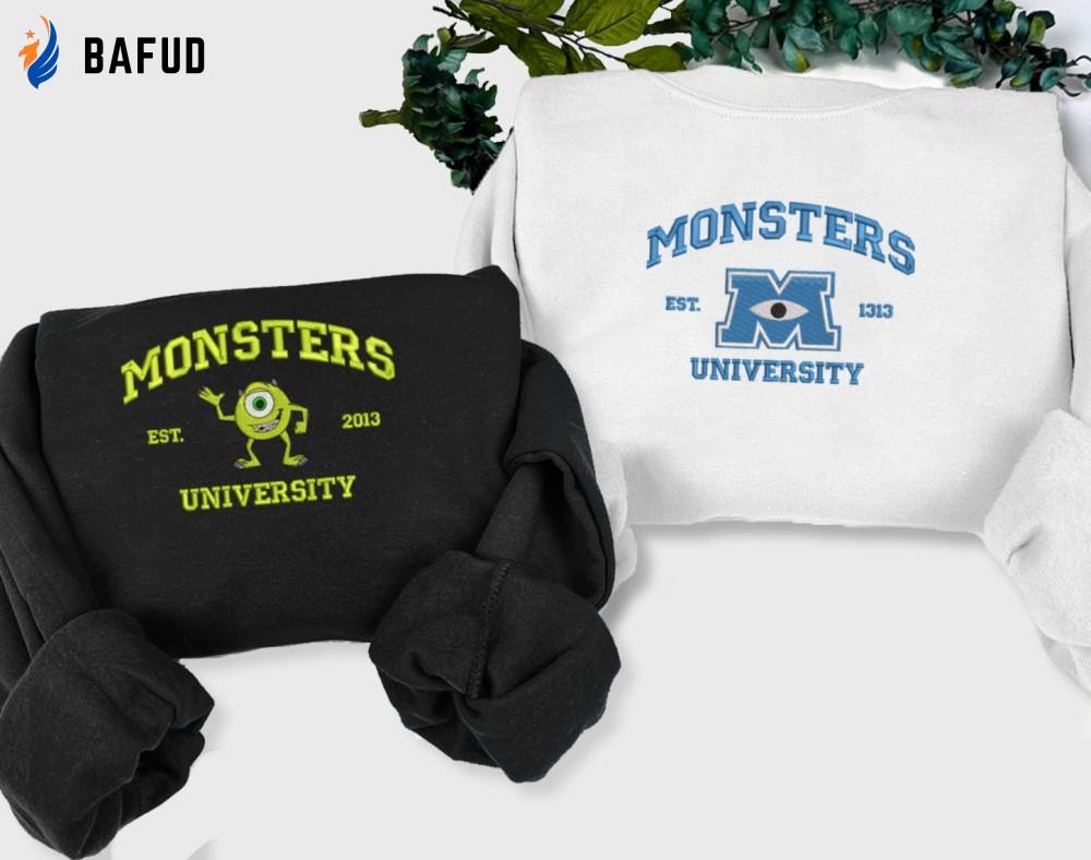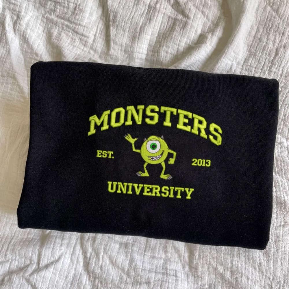 Introducing our Monster's University Crewneck Embroidered Sweatshirts, the perfect way to show off your love for the iconic movie! Made with premium quality fabric, these sweatshirts are designed to keep you cozy and stylish. The Mike Monster Crewneck showcases the lovable character's vibrant colors and intricate embroidery, ensuring an eye-catching look. Our Couple Shirt lets you and your partner embrace the Monster's University spirit together, making it a delightful gift for special occasions. And if you're a true fan, our Movie Shirt is a must-have, featuring a bold design that captures the essence of the film. But that's not all, our Monster University Hoodie offers both comfort and style, with its soft fabric and practical kangaroo pocket. Whether you're attending a movie night or simply want to express your fandom, our sweatshirts provide the perfect solution. With their high-quality construction and attention to detail, these sweatshirts are sure to become your favorite go-to pieces. Grab yours now and let the magic of Monster's University come to life in your wardrobe!