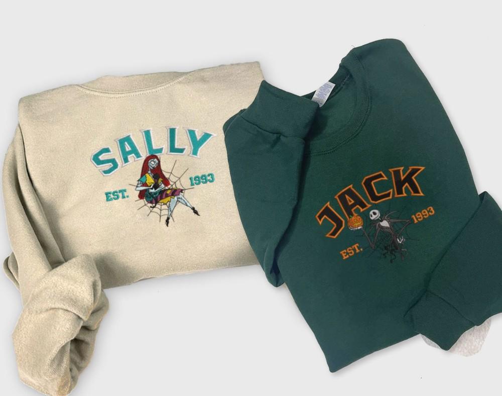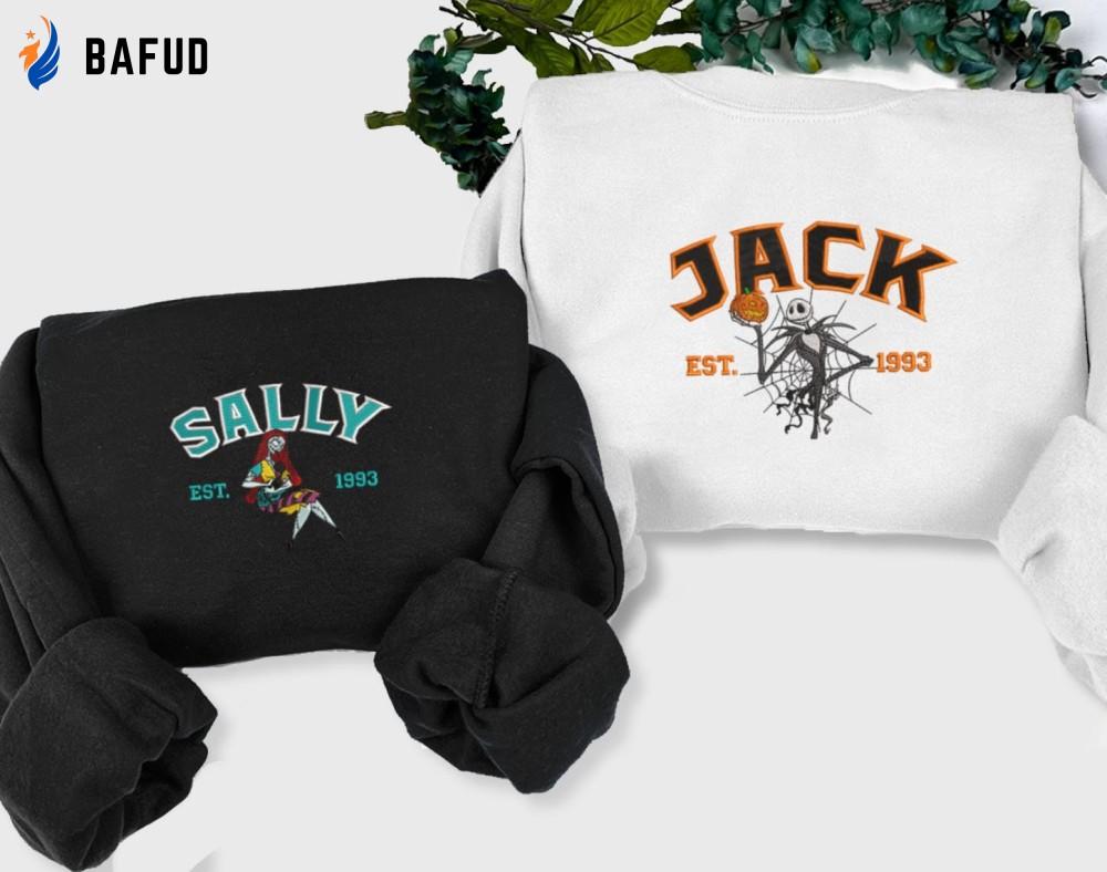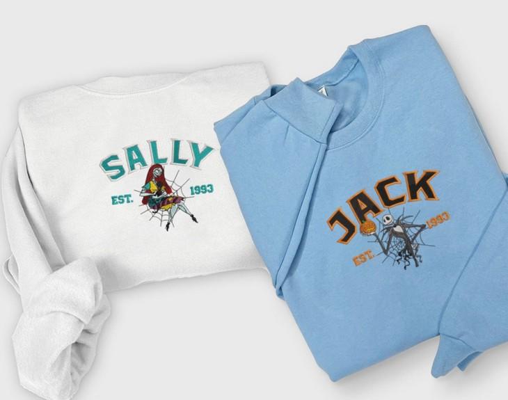Introducing our Jack and Sally Embroidered Sweatshirt from The Nightmare Before Christmas collection! This cartoon-inspired couple shirt features a stunning embroidery of Jack Skellington against the backdrop of Christmas Town. Made with high-quality materials, this sweatshirt offers comfort and durability. Its unique design adds a touch of whimsy to your wardrobe, making it perfect for Halloween, Christmas, or any occasion. Show off your love for the iconic characters while staying cozy and stylish. Get ready to turn heads with this must-have fashion statement! Embrace the magic of The Nightmare Before Christmas and make a statement that's truly one-of-a-kind. Don't miss out on this limited edition Jack and Sally Embroidered Sweatshirt, it's a collector's dream come true!