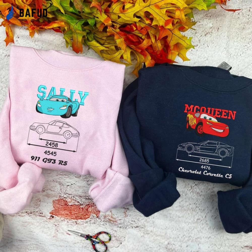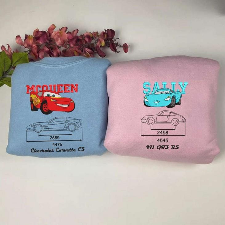 Cars Mcqueen x Sally Embroidered Sweatshirt: Trending Cartoon Crewneck Perfect Couple Christmas Gift For Him