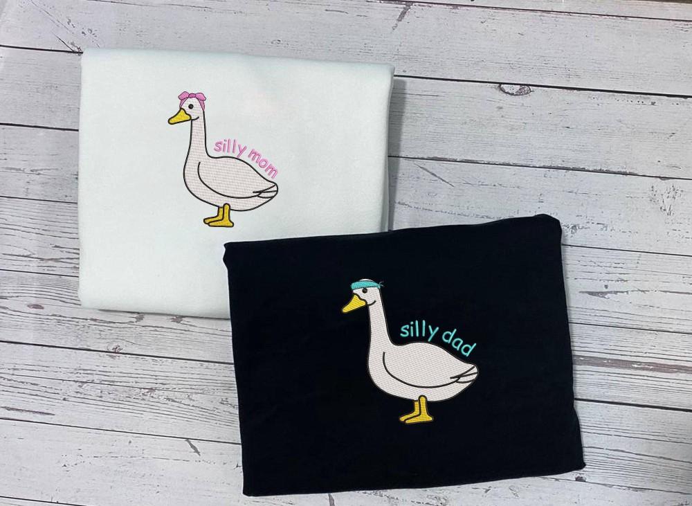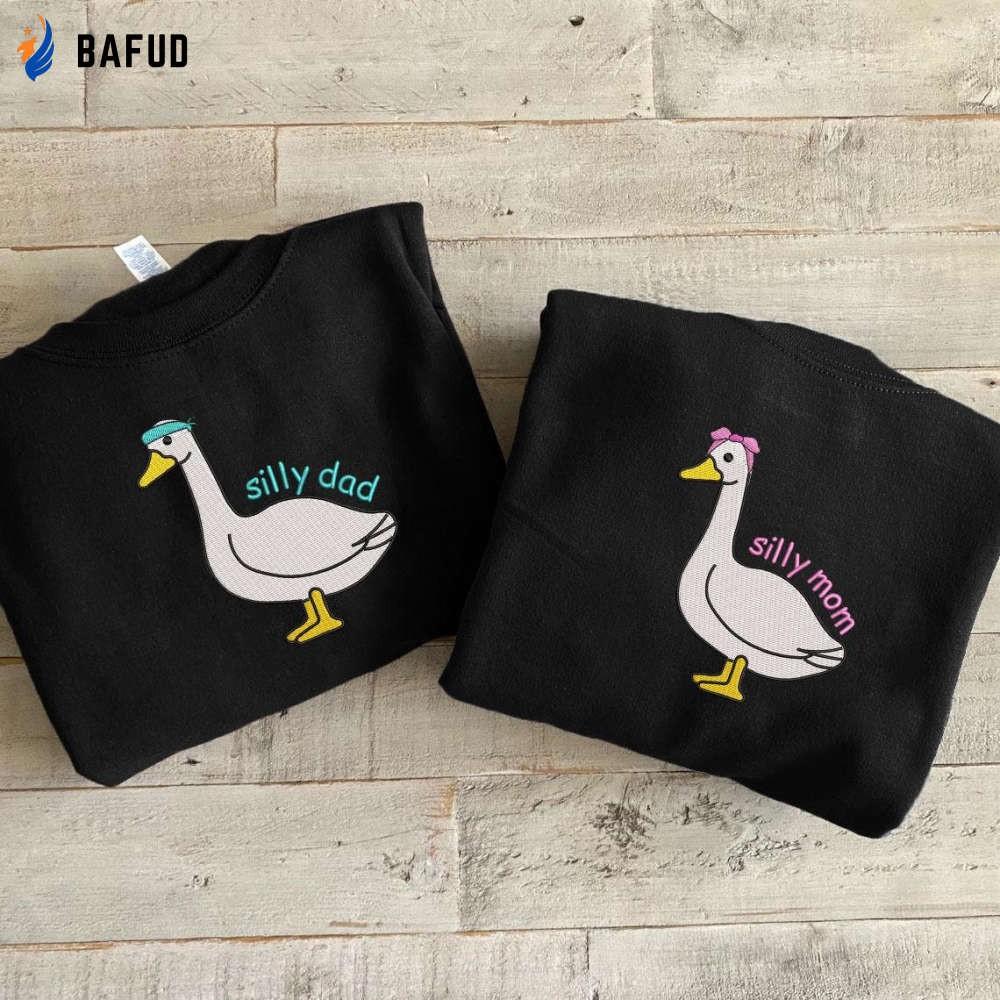 Silly Mom Silly Dad Embroidered Sweatshirts - Perfect New Mom and Dad Gift Funny Goose and Duck Shirts Father s Day Gift