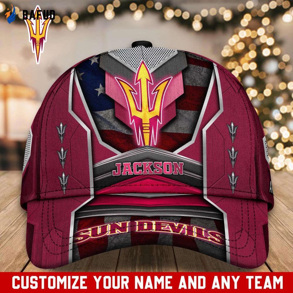 Introducing the Arizona State Sun Devils NCAA2-Cap Custom Hat, a must-have for passionate sports fans! Crafted for both men and women, this hat showcases your support for the Sun Devils in style. Made with premium materials, it offers a comfortable fit and durability. The embroidered team logo enhances its authenticity, making it a perfect gift for any Arizona State University enthusiast. Whether you're cheering at the stadium or running errands, this hat is designed to keep you looking stylish while representing your favorite team. Grab yours now and show off your Sun Devils pride!