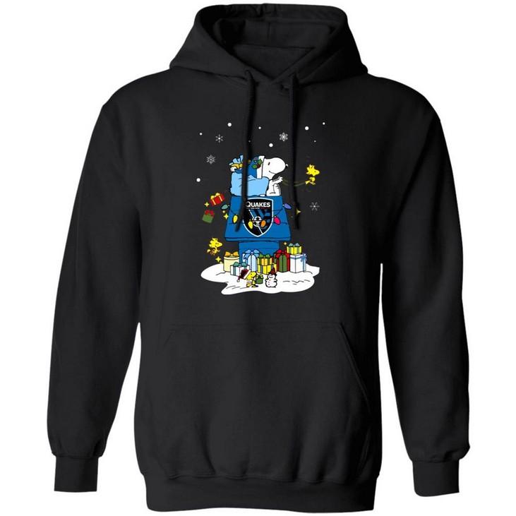 Get into the holiday spirit with the San Jose Earthquakes Santa Snoopy Wish You A Merry Christmas Shirt! This limited edition shirt features an adorable design of Snoopy dressed as Santa, spreading joy and cheer. Made from high-quality materials, it offers both comfort and durability. Show your love for the San Jose Earthquakes and Snoopy while celebrating the festive season. Perfect as a gift for any soccer and Peanuts fan, this shirt is a must-have addition to your wardrobe. Spread the holiday cheer and support your favorite team with this unique and stylish shirt!