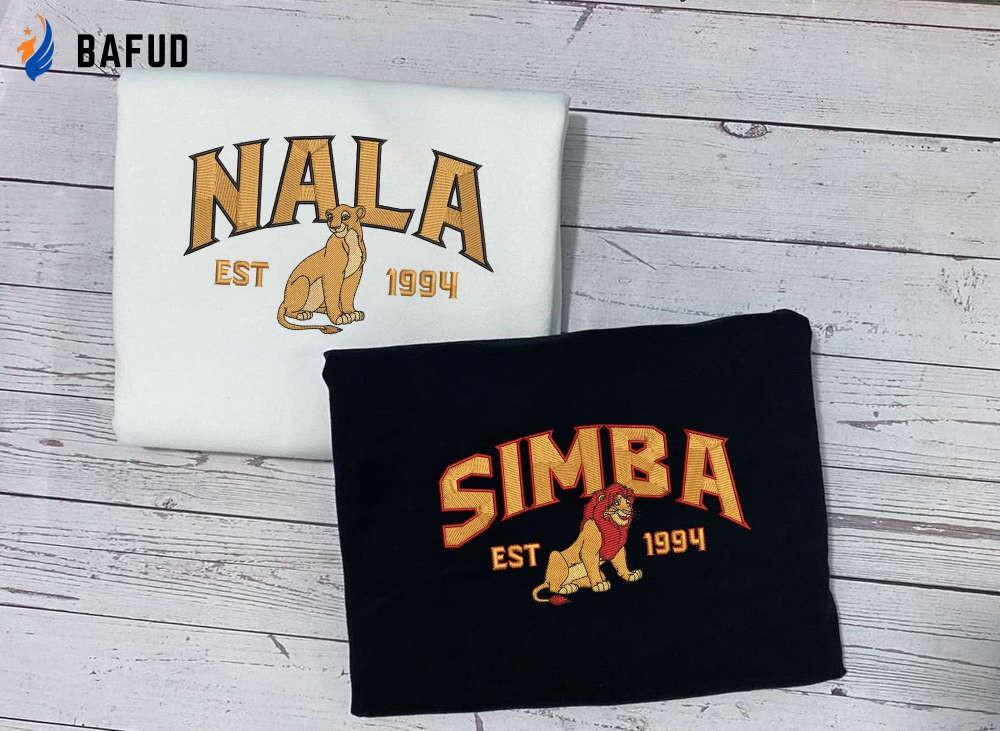 Introducing our Simba and Nala Embroidered Sweatshirts, the perfect addition to any Lion King fan's wardrobe. Made with highquality materials, these trendy crewneck shirts feature intricate embroidery of the iconic lion couple. Not only are they a great gift for a friend, but they also make fantastic Christmas shirts! With their unique design and comfortable fit, these shirts offer both style and comfort. Show off your love for the Lion King with these EH131-132 shirts and be the envy of all your friends. Don't miss out on this limited edition collection!