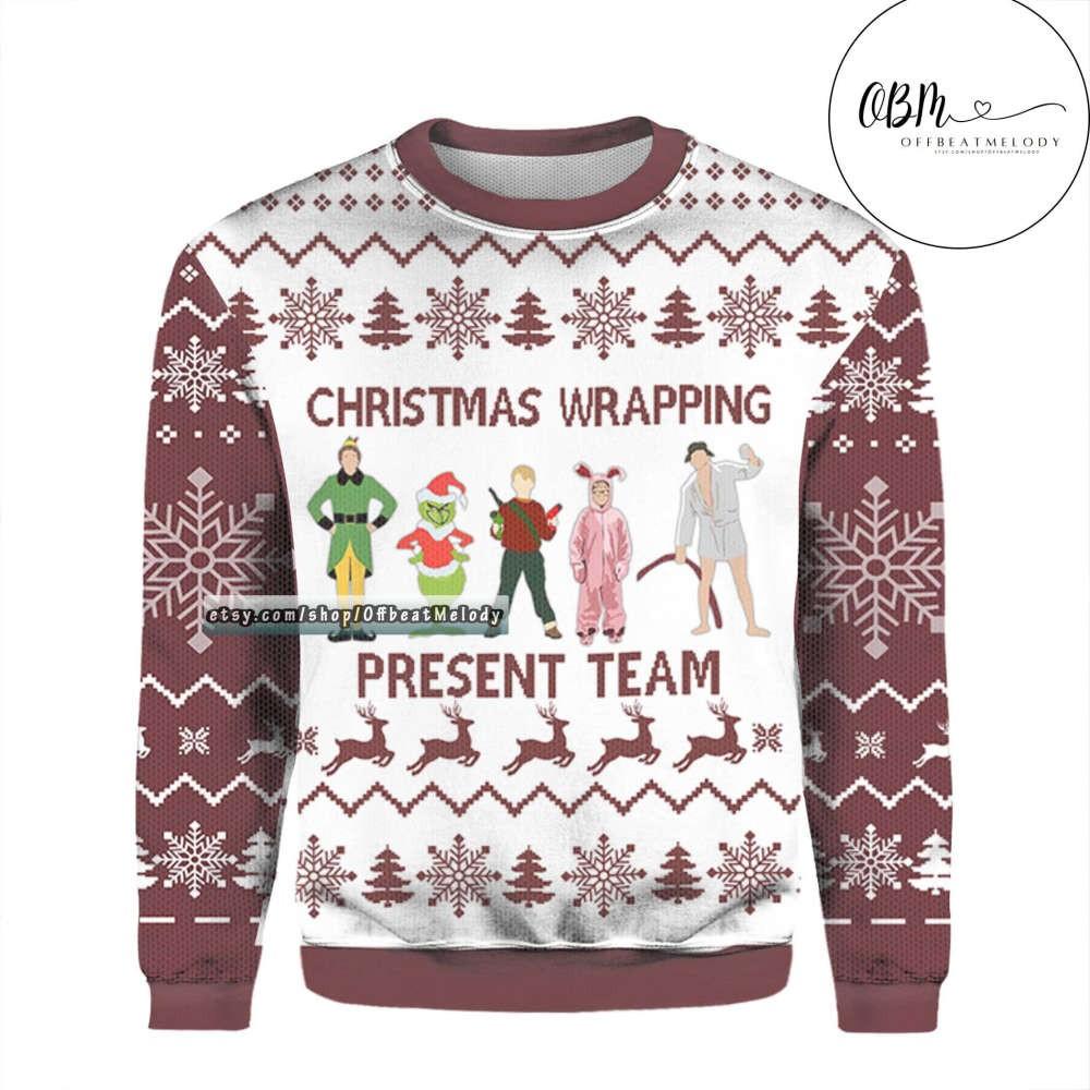 Christmas Wrapping Present Team Ugly Christmas Sweater Over Print, Elf Grinch Christmas Ugly Sweater, 2022 Christmas Gift Shirt