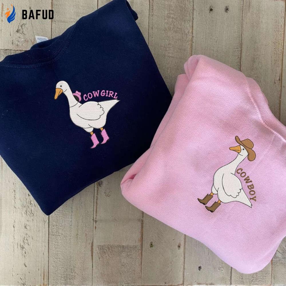 Introducing our Western Silly Goose Embroidered Sweatshirts, designed to add a touch of whimsy to your wardrobe! Made with premium quality fabric, these sweatshirts feature a delightful embroidered goose motif, capturing the essence of Western charm. With a retro Silly Cowboy Shirt, Cowgirl Silly Goose Shirt, Duck Shirt, and Cowboy Duck Shirt, we offer a wide range of options to suit every style. The intricate embroidery and attention to detail make these sweatshirts truly unique and eyecatching.