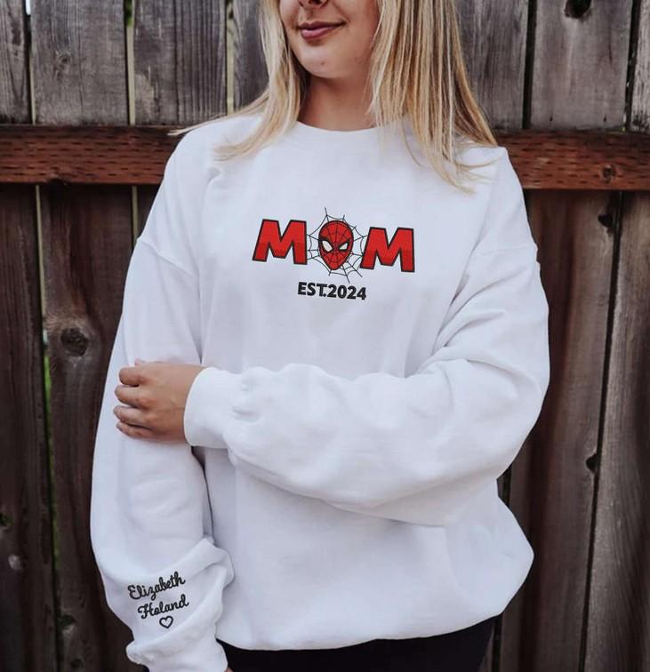 Introducing our Custom Spider Dad & Mom With Kid Names on Sleeve Embroidered Shirt! This Marvel Sweatshirt is the perfect Mother's Day gift for Spiderman enthusiasts. Made with highquality materials, it showcases your favorite superhero in style. Personalize it with your children's names embroidered on the sleeves, adding a heartwarming touch. The shirt offers comfort, durability, and a unique design that will make you stand out from the crowd. Show your love for Spiderman and your family with this one-of-a-kind Spiderman Couple shirt. Order now and surprise your loved ones with an unforgettable gift!