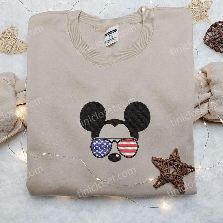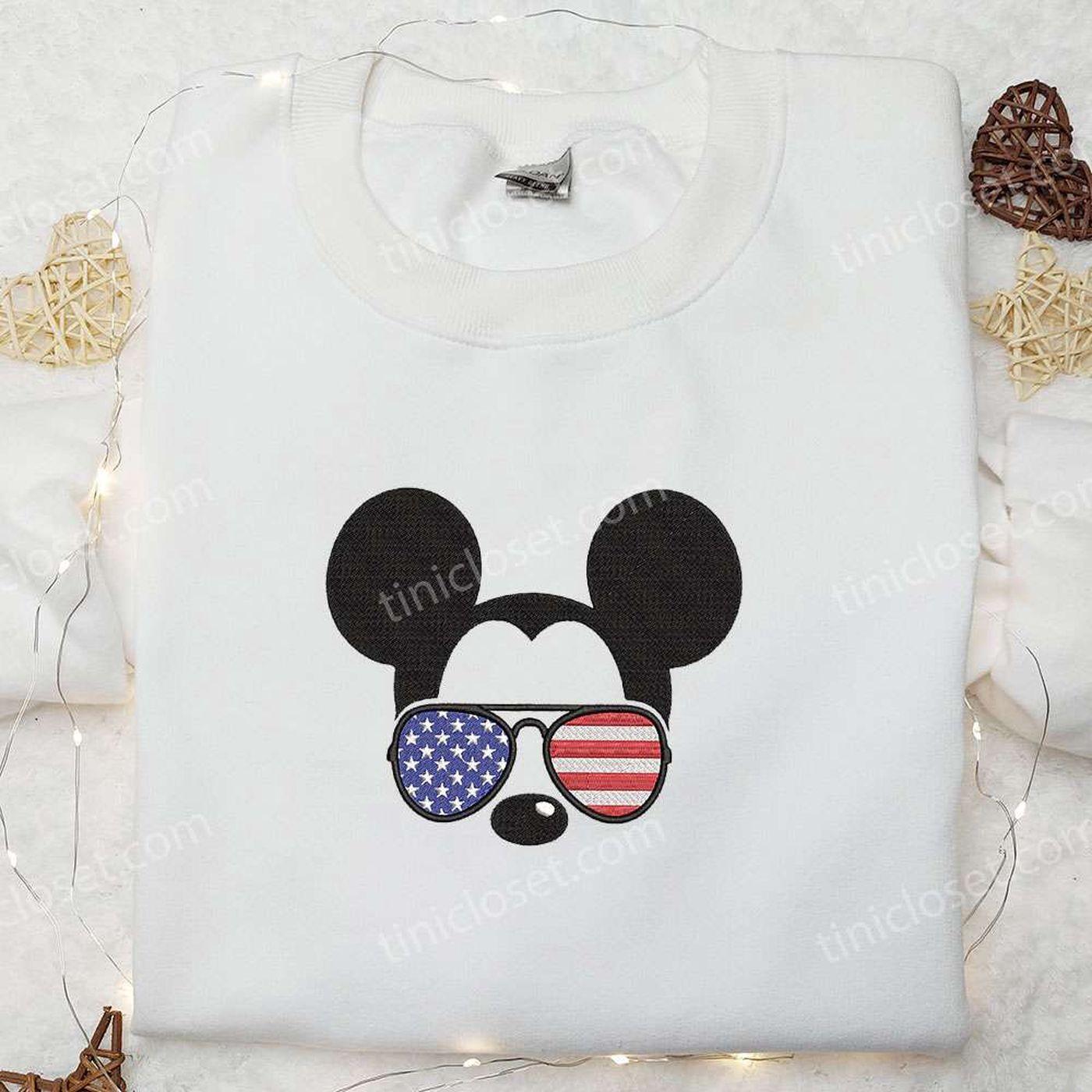 Embroidered Shirt, a must-have for Disney enthusiasts and patriotic fashion lovers! This shirt features a high-quality embroidery of Mickey Mouse wearing glasses, adding a playful touch to your outfit. Made from premium materials, it offers utmost comfort and durability. Show your love for both Disney and America with this unique shirt, perfect for any occasion. Stand out from the crowd and express your individuality with our Best Patriotic Shirts collection. Get yours today and let Mickey Mouse accompany you on your patriotic adventures!