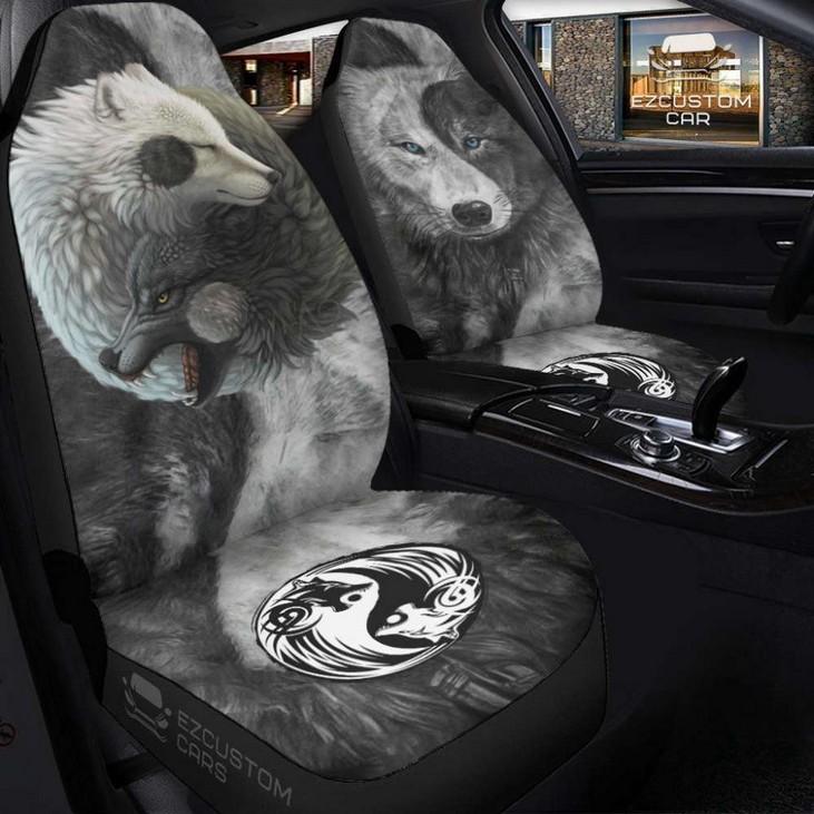 Investing in our custom animal car accessories not only elevates your car's appearance but also reflects your unique personality and love for nature. Stand out from the crowd and unleash your inner wild spirit with our Black and White Wolves Car Seat Covers.