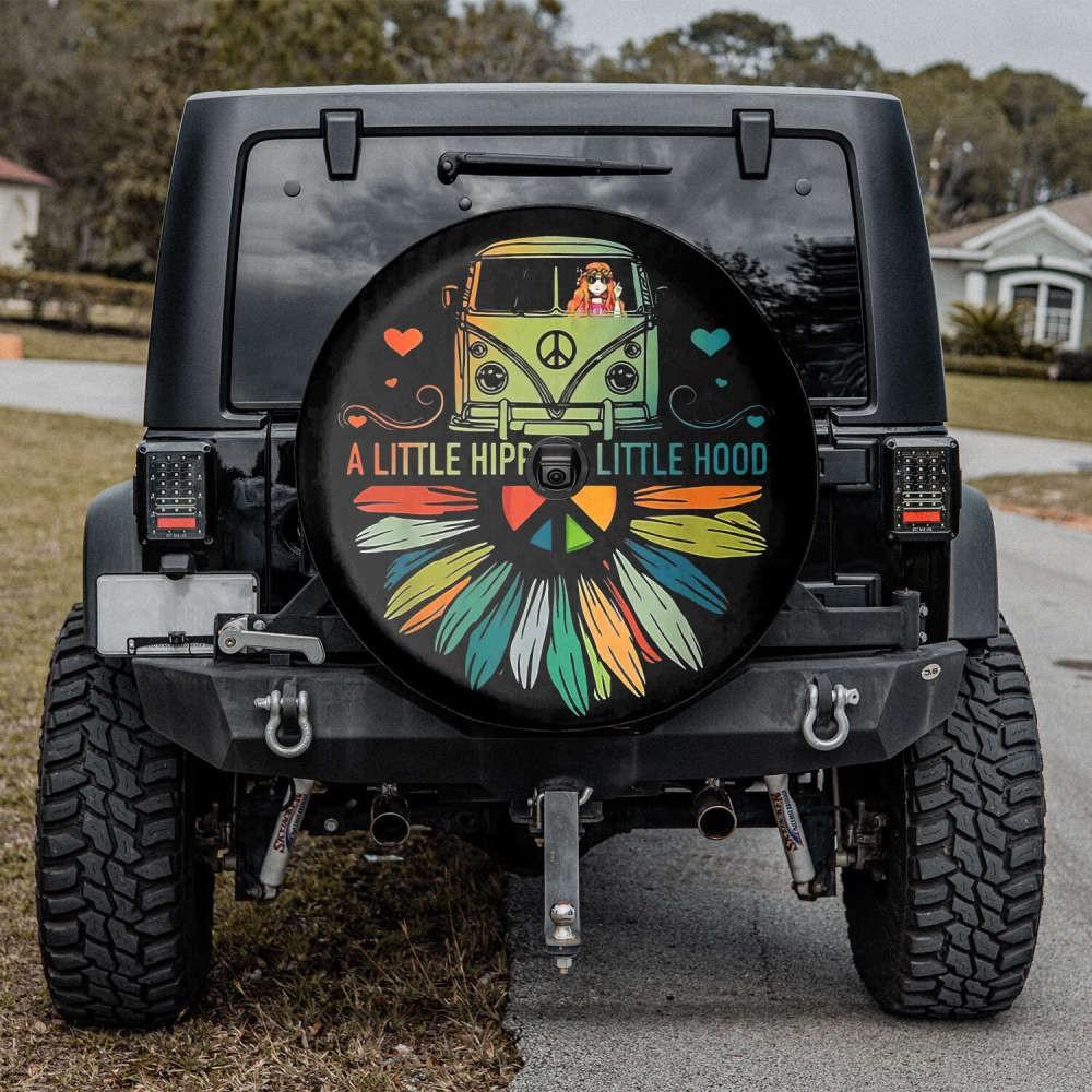 A Little Hippie A Little Hood Spare Tire Cover is the perfect accessory to add a touch of boho charm to your car. Whether you're a free-spirited hippie or a street-savvy hood, this tire cover is designed to showcase your unique style. Available with or without a camera hole, it allows you to maintain your rearview functionality while keeping your spare tire protected.