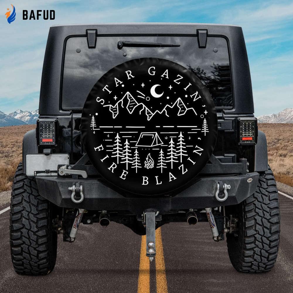Introducing the Star Gazin' Fire Blazin' Spare Tire Cover - the perfect accessory for all outdoor enthusiasts! Whether you're embarking on a thrilling camping adventure or hitting the road for a scenic drive, this tire cover is a must-have addition to your vehicle.