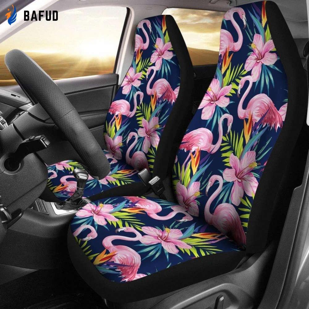 Our seat covers feature a vibrant flamingo and hibiscus print that adds a touch of exotic beauty to your car. Made from highquality materials, they guarantee long-lasting performance and protection for your seats.