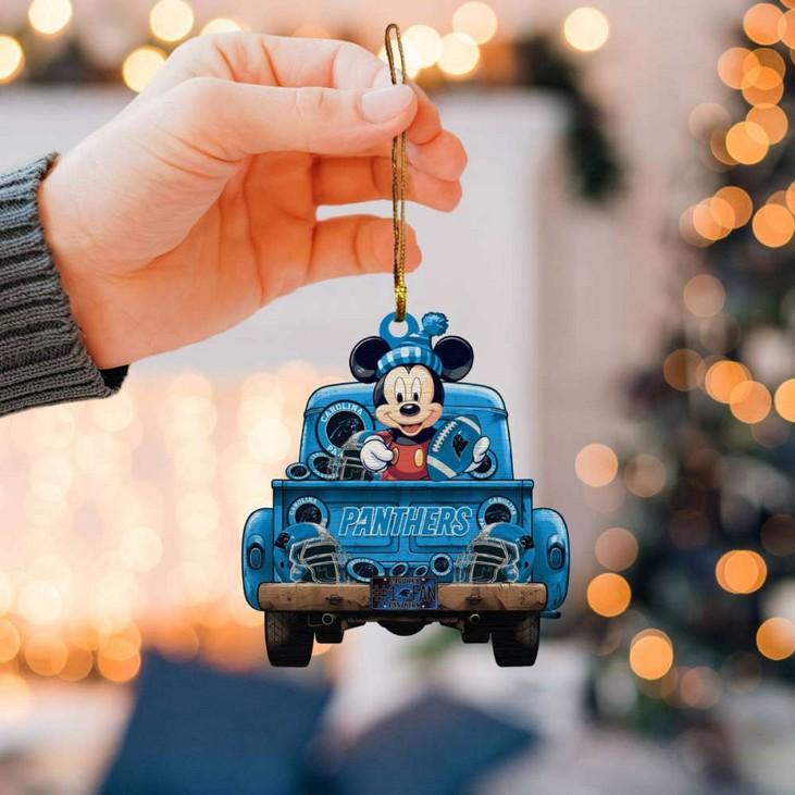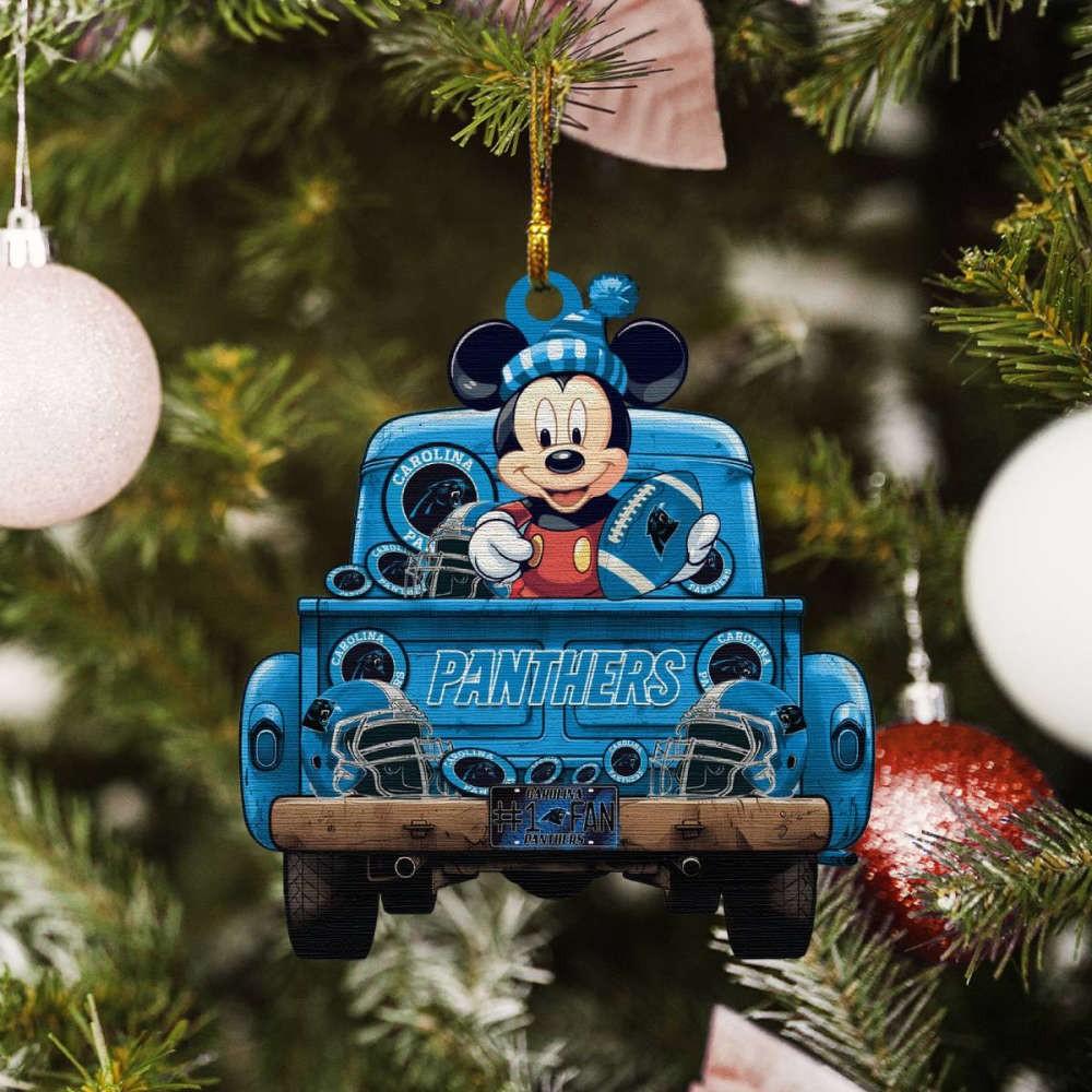 Introducing the Carolina Panthers Mickey Mouse Christmas Wood Ornament, the perfect addition to your holiday decor! This officially licensed ornament features a charming design of Mickey Mouse dressed in the iconic Carolina Panthers team colors and logo, adding a touch of team spirit to your Christmas tree. Crafted from high-quality wood, this ornament is built to last for years to come. Hang it with pride and showcase your love for both Mickey and the Panthers. With its durable construction and festive design, this ornament makes for a great gift for any Panthers fan. Spread holiday cheer while supporting your favorite team with the Carolina Panthers Mickey Mouse Christmas Wood Ornament!