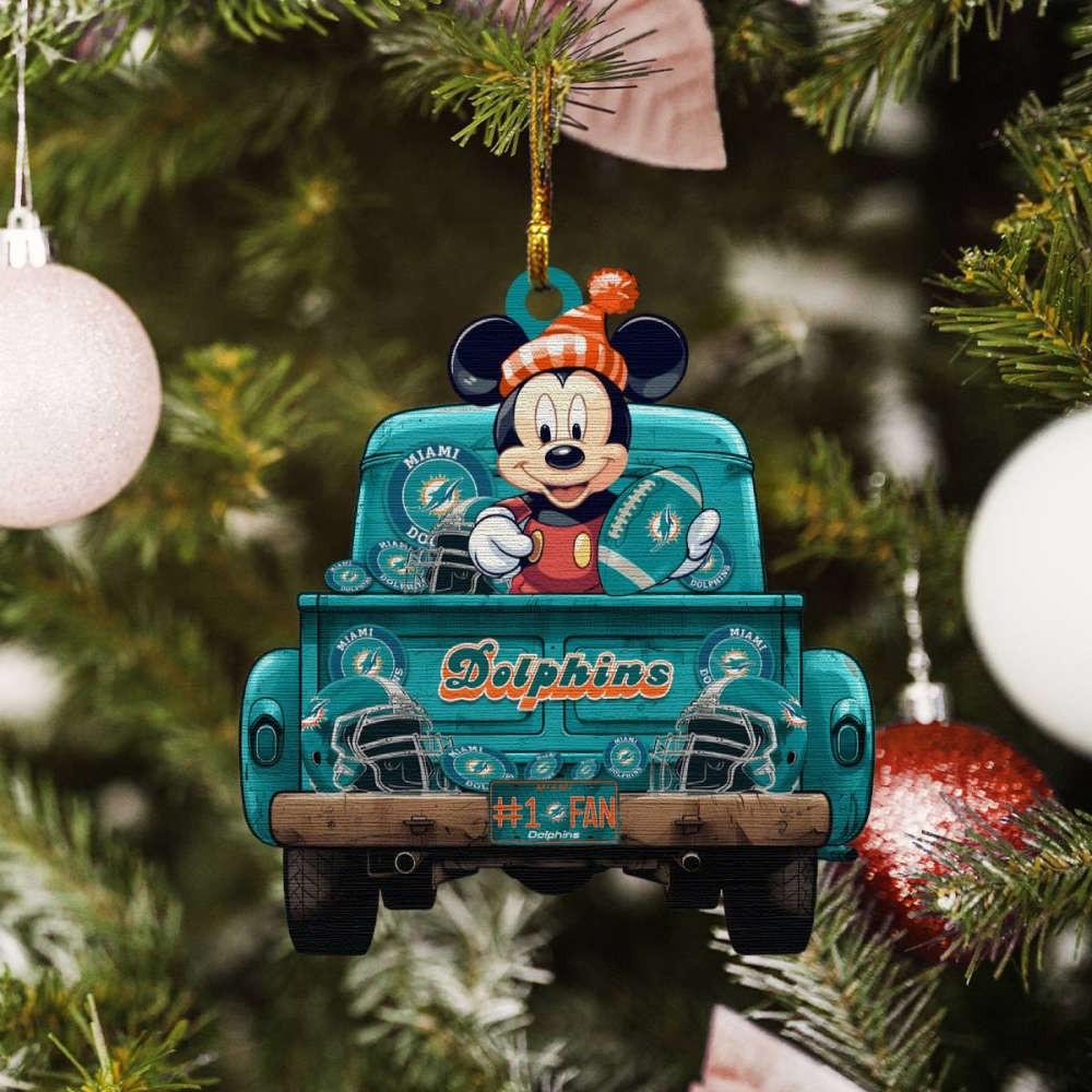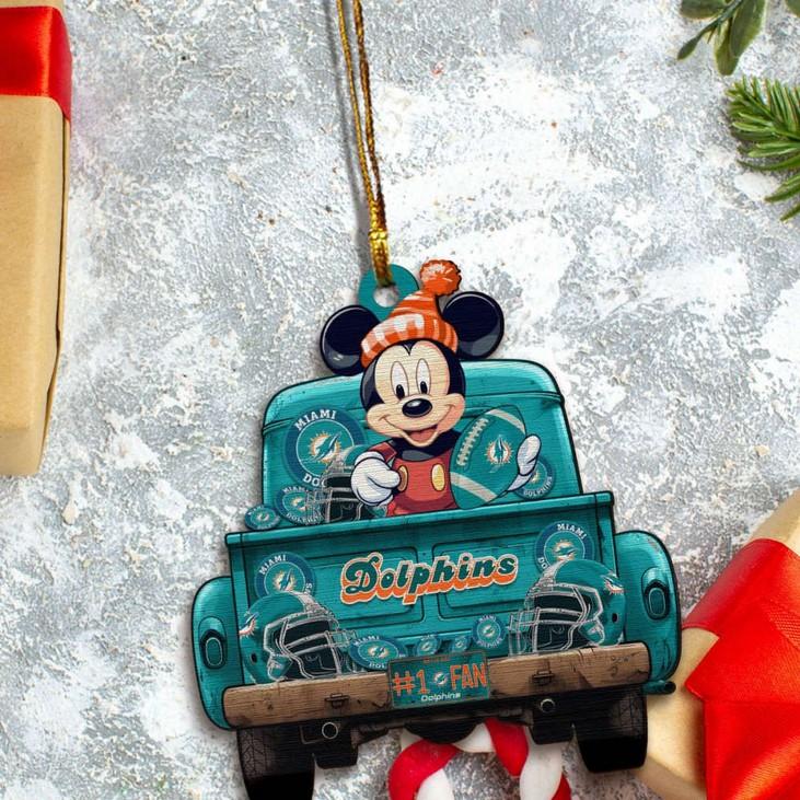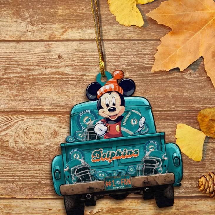 Introducing the Miami Dolphins Mickey Mouse Christmas Wood Ornament, the perfect addition to your holiday decor collection! This officially licensed ornament showcases the iconic Miami Dolphins logo in vibrant colors, proudly displayed on a highquality wooden base. Its durable construction ensures longlasting beauty, making it a cherished keepsake for years to come. Hang it on your Christmas tree, mantel, or showcase it on a shelf to show off your team spirit during the festive season. Whether you're a die-hard Dolphins fan or looking for a unique gift for someone special, this ornament is a must-have. Spread holiday cheer and support your favorite NFL team with the Miami Dolphins Mickey Mouse Christmas Wood Ornament - a timeless piece that brings joy and celebration to your home.