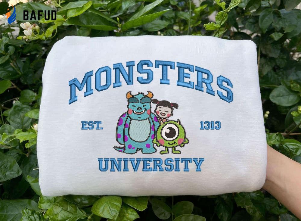 Introducing our Monster's University Crewneck Embroidered Sweatshirts, the ultimate trending crewneck for Disney enthusiasts! Made with high-quality fabric, this shirt showcases the iconic Monster University logo through intricate embroidery. Stay cozy and stylish with this comfortable hoodie, perfect for movie nights or casual outings. With its eye-catching design and superior craftsmanship, our Monster University Hoodie ECL123 offers exceptional value to customers seeking a unique and fashionable addition to their wardrobe. Get ready to show off your love for Disney and relive the magic of Monsters, Inc. with this must-have sweatshirt!