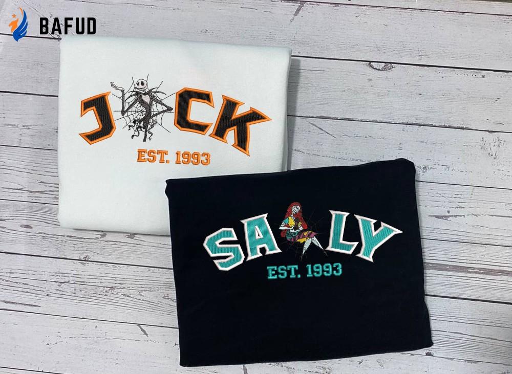 Jack and Sally Embroidered SweatshirtNightmare Before Christmas Cartoon Couple Shirt