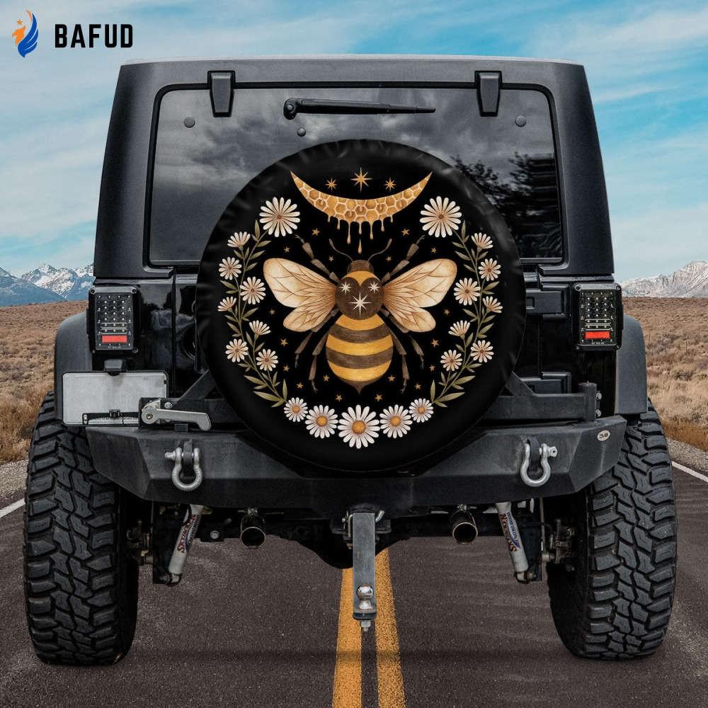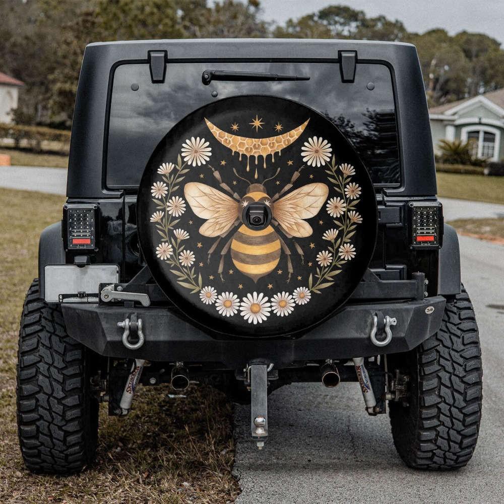Honey Moon Spare Tire Cover, Bee Flower Spare Tire Cover, Botanical Tire Cover, Honey Bee With Sunflower Spare Tire Cover, Gift For Her BUY IT